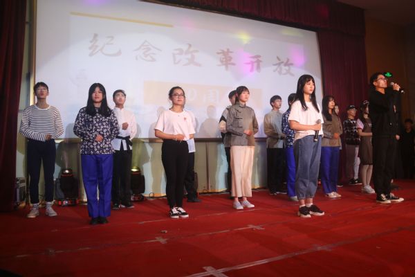 晚会在由院员工会成员带来的激情开场舞《Ei,98k路里》中拉开帷幕。。晚会包含了歌舞、小品、历史剧、相声、朗诵、合唱等精彩的节目,为观众奉献了一场视听盛宴。来自17公管的小品《疯狂电台》幽默风趣,带动了全场气氛。17国贸和17人管带来的古筝伴舞《不染》,A-Youth舞团带来的舞蹈《Rumor》以及16、17、18贸一18保险带来的激情澎湃的歌曲串烧《Love story》、舞蹈串烧,双节棍伴唱和朗诵将全场气氛推上高潮。随后,经管院记者团带来的创意类节目《开天辟地四十年》,展现了中国改革开放四十年的变化。整场晚会高潮迭起,观众们热情高涨。最后,晚会在校歌《青春在飞扬》的大合唱中完美落幕。
