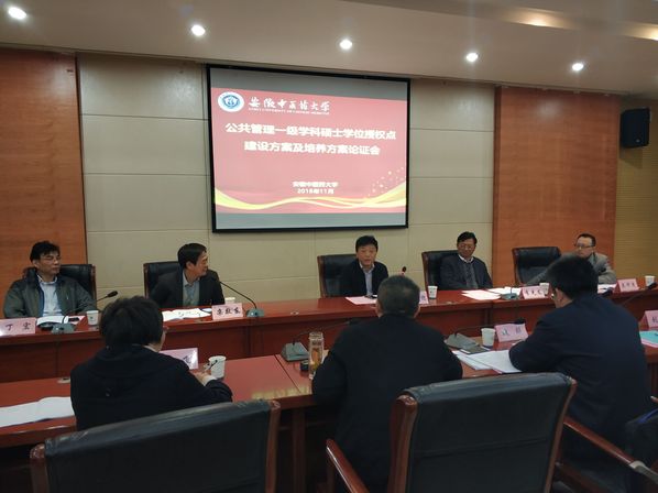 以中国科学技术大学管理公司博士生导师、安徽省级重点研究基地—工商管理创新研究中心主任、中国科大案例中心主任刘志迎教授为组长,安徽大学经济公司博士生导师李光龙教授、安徽农业大学经济管理公司经理栾敬东教授、合肥工业大学经济公司经理吴华清教授、安徽医科大学卫生管理公司副经理丁宏教授为成员的专家组对硕士点建设方案及培养方案进行了论证。公司党委委员、副董事长魏骅,英国365集团副经理丰志培、研究生院培养科张一萌、学位科刘芳、英国365集团全体研究生导师、公共管理教研室教师、学科学术骨干等参加了会议,会议由魏骅主持。