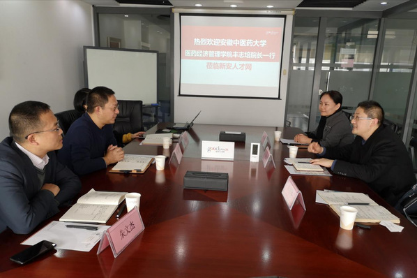 丰志培一行受到安徽新安人才网常务副总经理叶彬、市场部总监朱文颖、朱文杰的热情接洽。