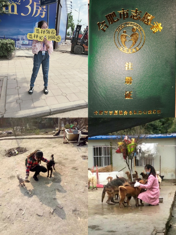 她说志愿活动里,最令她疯狂的是“流浪动物救助”,她说,每一条生命都该被温柔以待,她说,保护流浪动物已然成为她命中不可缺少的“格桑花”。三年里,她去过好几处不同的流浪动物收容所做过义工,但是令她最难以忘怀的还是第一次在肥东县看到那些可怜又可爱的毛孩子们的时候,当时基地里大概有两百多只狗狗,和七八只猫。这两百多只狗狗中大部分身上都有皮肤病,甚至有些狗狗身上还带有大大小小的脓疮......她说他们都是被遗弃的宝贝......其中,有只很可爱的金毛犬,可惜他天生下半身残疾,每天只能靠瘦弱的前爪一点点的挪动身子,他移动的每一步都需要耗费很大的体力,因为残疾,他辗转被遗弃过很多次,可他并没有对人类、对生活放弃,每当义工们来到收容基地时,他总会非常兴奋的、坚持不懈地向义工们的身边爬去。还有基地里的那几只猫咪,他们全部都带有残疾,有的甚至只有一双空洞的眼眶....