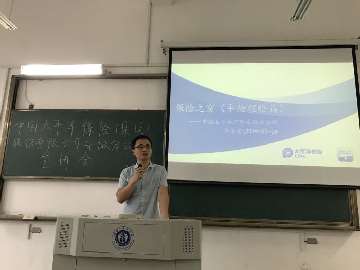 5月28日晚,公司召开保险专业宣讲会,公司保险专业辅导员孙孝涧、许梦月及16、17、18级保险专业员工参加本次宣讲。讲座由保险专业员工、中国太平洋产险安徽分公司车意险理赔部科长李乐意担任主讲。