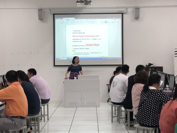 董妍妍介绍了公司网络课程建设现状。超星工程师通过PPT讲解及现场演示的方式,对超星网络平台的使用、学习通手机客户端的安装与操作进行了具体说明,并结合教师实际操作进行现场指导。