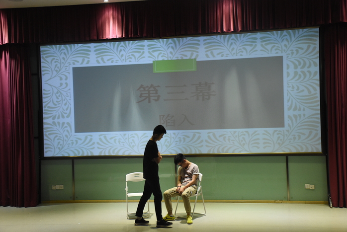 根据院内选拔的结果,本次比赛由18级公共事业管理班代表公司参赛,18公管班以《一念地狱,一念天堂》为题,讲述一名老员工沉迷网游、经常逃课,加之经不起诱惑涉足校园贷,一步步堕入深渊,而经过教诲、关心、开解最终大彻大悟获得新生的故事。小演员们用心投入的表演收获了观众的阵阵掌声,最终获得三等奖。