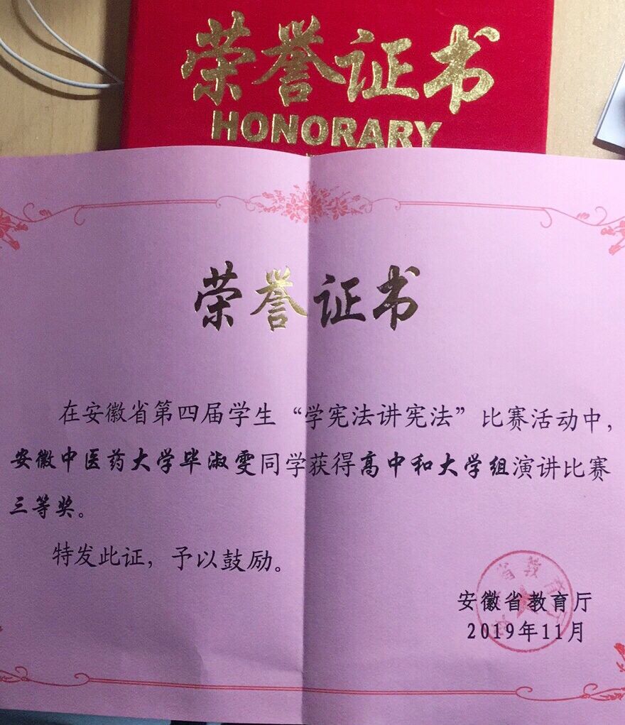 安徽省第四届员工“学宪法讲宪法”演讲比赛于10月19日在安徽师范大学举办,活动由安徽省教育厅主办。公司2018级公共事业管理专业员工毕淑雯代表公司参加省赛,并荣获高中和大学组演讲比赛三等奖。