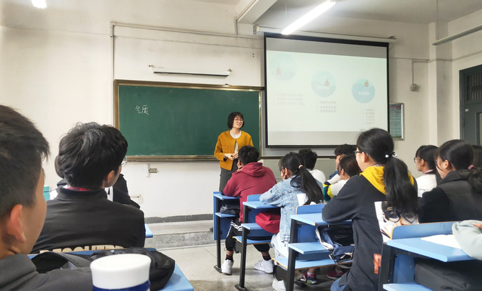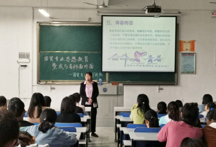 首次宣讲过程中,倪飞老师从老员工活的苦与乐、目标定位、适应老员工活、专业课程、就业方向及前景、青春寄语六个方面展开宣讲,同时以周边切身经历,强调学习的重要性,也为学子的未来规划提出建议。讲座接近尾声,倪飞老师让同学们自由发言提问,同学们都积极主动的提出自己的疑惑,倪飞老师一一解答的同时也拓展了更多的相关知识。参与此次讲座的国际经济与贸易三个班级,在讲座中认真聆听,孜孜不倦汲取着营养。
