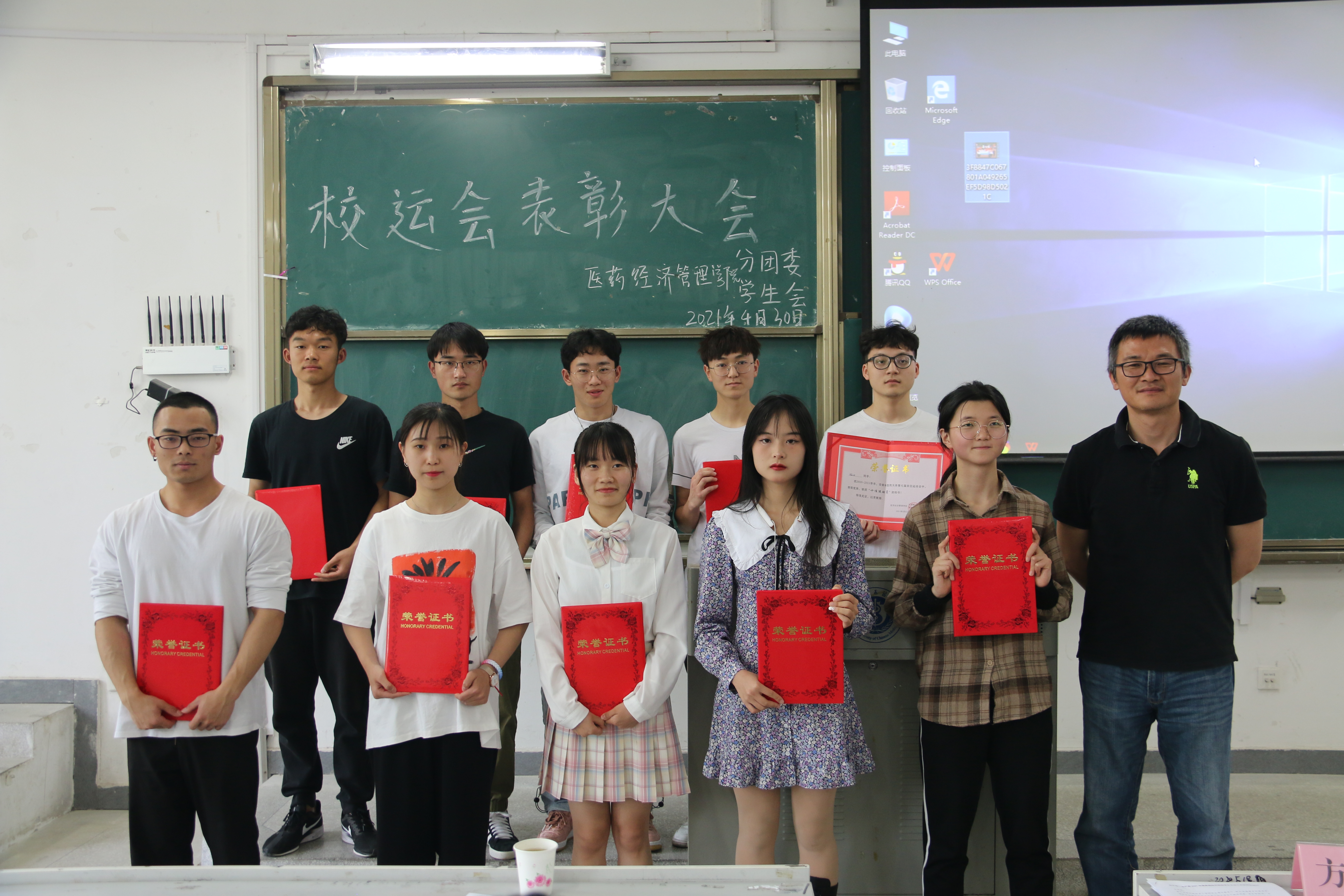 表彰会首先对本次校运会的获奖情况进行讲解和总结,肯定了运动员们在比赛中的优秀表现,随后方晓和范思敏为十佳运动员和十佳工作者颁发证书并进行合影。