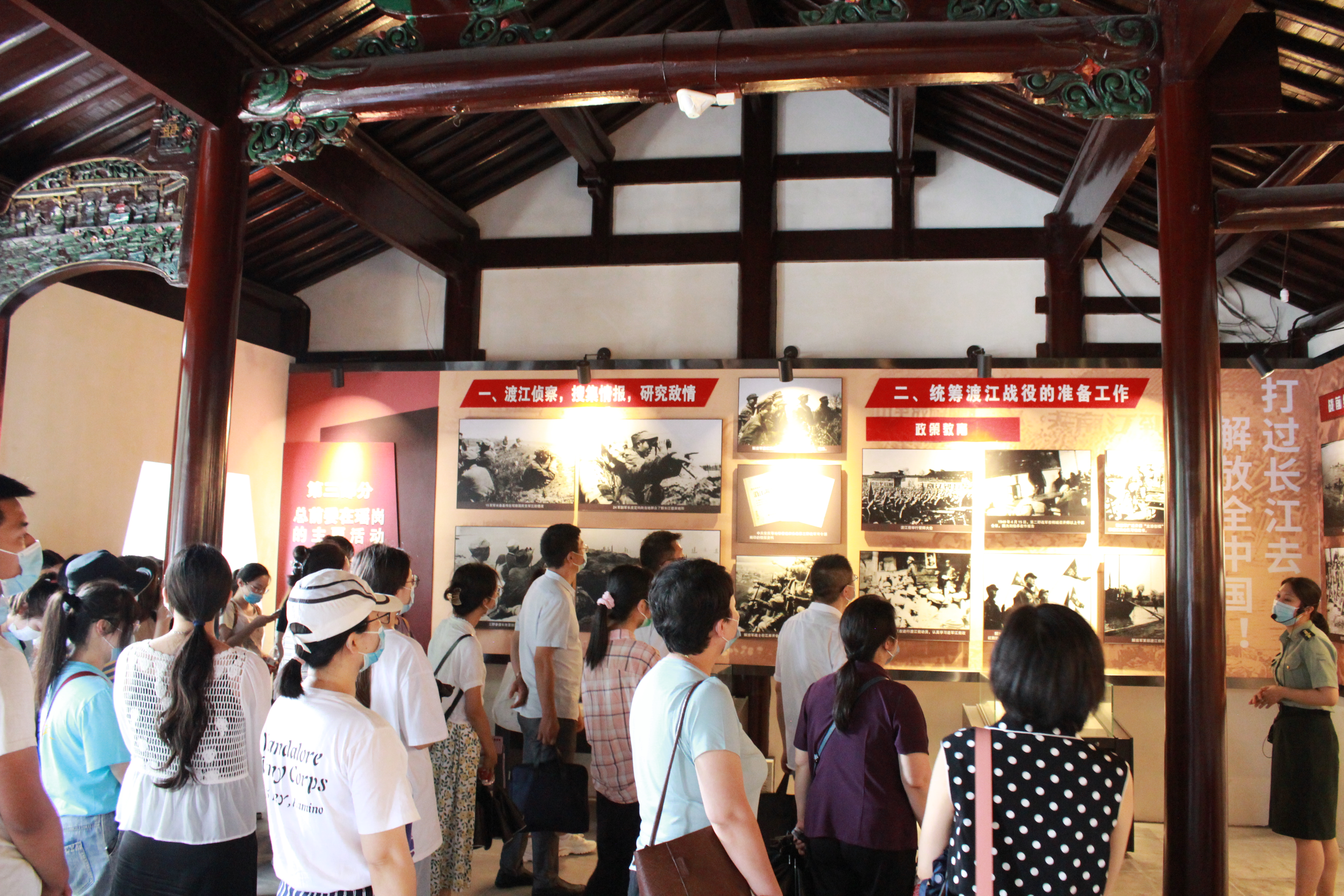 渡江战役总前委旧址位于安徽省肥东县瑶岗村,瑶岗既是渡江战役指挥中心所在地,又是渡江战役的主战场,江淮地区人民大众为夺取渡江战役的胜利做出了重大的贡献。参观当天,公司师生首先通过电教片学习了解渡江战役前的敌我态势、战役的决策部署、战役的具体经过以及小木船和马毛姐的故事。随后大家参观了总前委旧址,总前委参谋处、机要处、秘书处旧址,中共中央华东局旧址,缅怀先烈英雄事迹,学习伟大革命精神。员工支部还结合此次党史教育开展重温入党誓词活动。