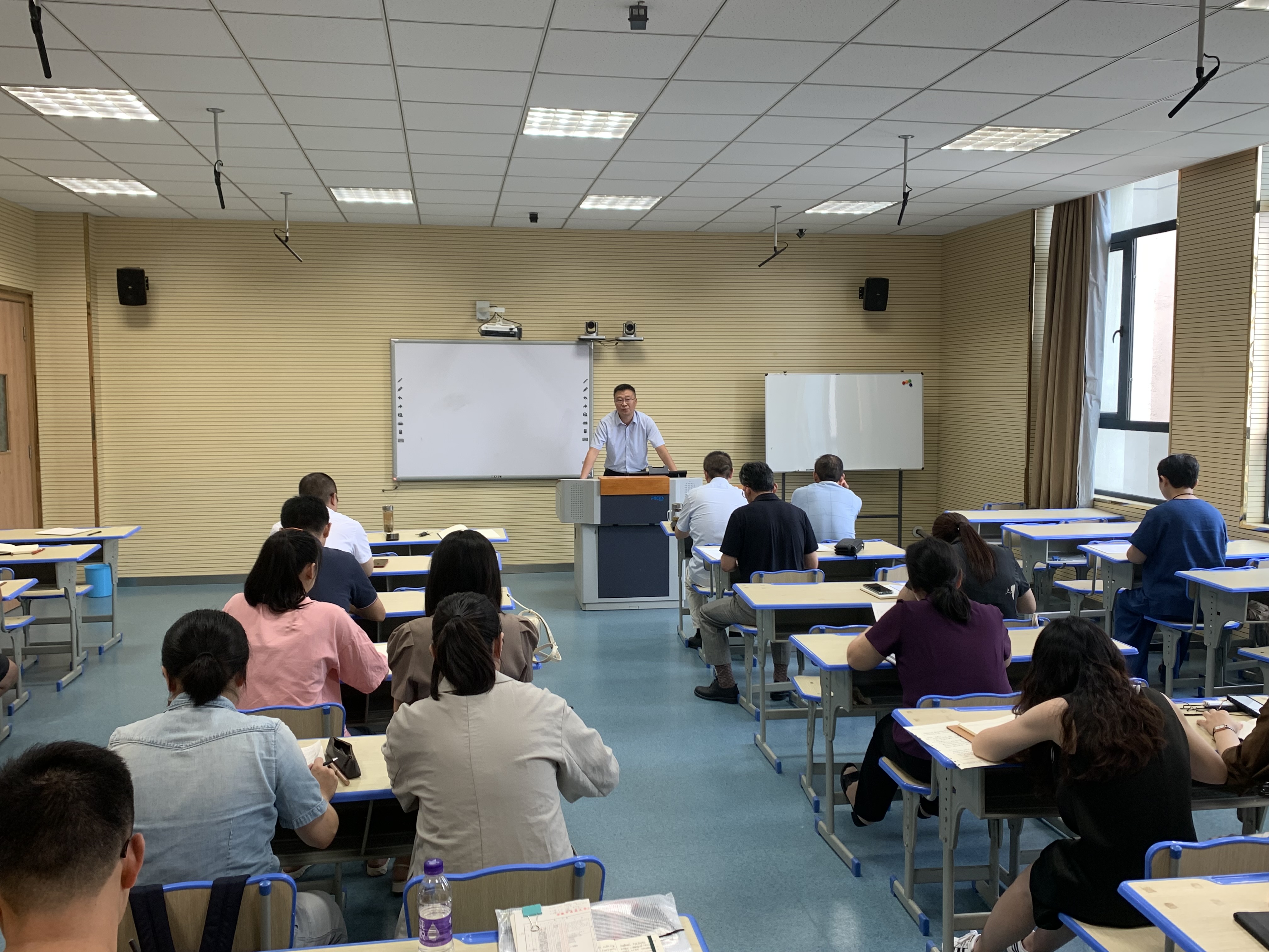丰志培从假期党务工作,教学科研,21级本科生招生录取,预算申报,团学工作,“三全育人”项目推进,20周年院庆筹备,疫情防控等8个方面对暑假期间的工作做全面总结。他强调要以长远发展目标为指引,做好“十四五”规划,统筹做好全员聘用、2023年审核性评估和硕士点评估工作。下半年,要持续加强党的建设,开展好党史学习教育,学习好“七一”重要讲话精神,以党建为引领,以“三全育人”试点院系建设为抓手,进一步加强公司产品,坚持教学中心地位不动摇,做好公管团队建设和硕士点评估,继续加强智库平台建设、团学工作、人才工作和员工安全稳定工作,以建院20周年系列活动为切入进一步做好公司宣传工作,加强公司日常管理、做好基础条件建设和保障工作。丰志培要求,全体教师一要加强政治学习,增强使命担当;二要坚持潜心育人,坚持底线思维;三要爱岗敬业,追求创新,做新时代立德树人、教书育人的好老师。