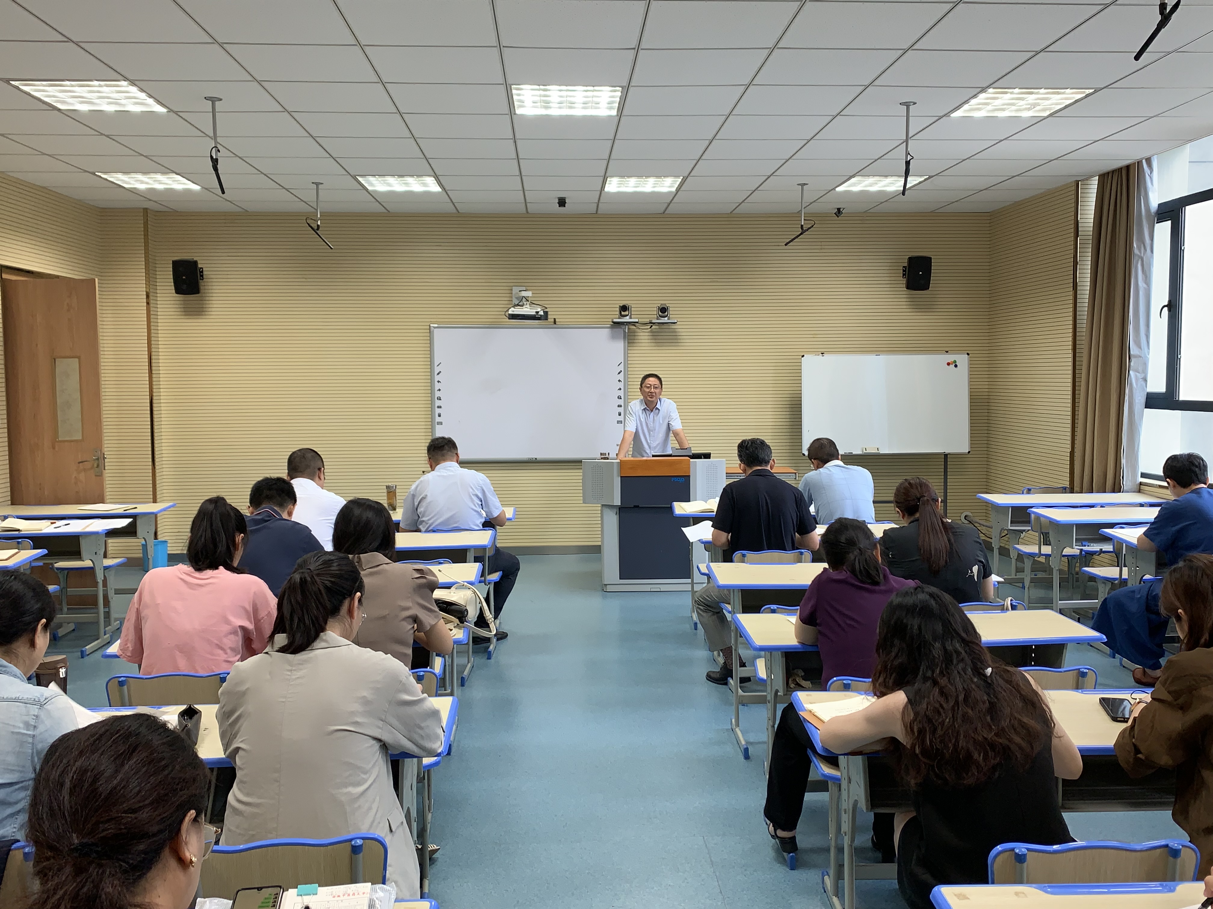 会上,公司副经理陶群山就《英国365集团关于做好2021-2022学年第一学期开学各项教学准备工作的通知》对开学时间,期初教学检查,教材课表,教学进程表、自主学习任务单、成绩评定备案表等填报,试卷归档,缓补考,疫情防控第一课学习等12项开学重点工作进行了布置,着重强调了院领导听课、教研室听课以及近期相关课题申报等工作的要求。