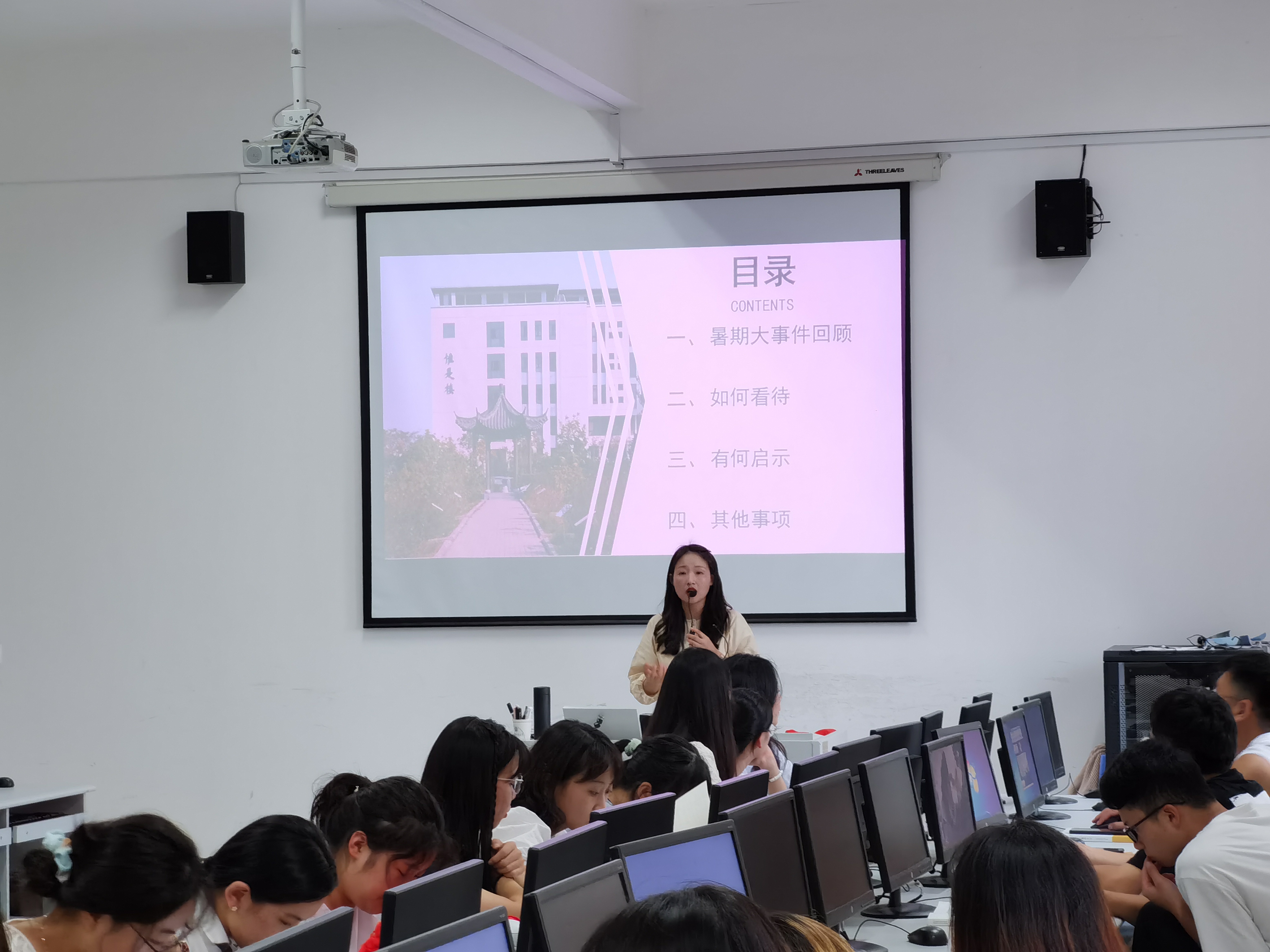 各班辅导员在主题班会上系统传达秋季学期疫情防控工作要求,提醒同学们做好个人防护与消毒,加强防诈骗、防传销、网贷等安全教育,引导员工在做好疫情防控的同时,尽快恢复正常学习状态。同时强调要关注宿舍用电安全,杜绝宿舍安全隐患,做到纪律,安全,学习三到位。辅导员还在主题班会上强调了知校爱校的重要性,培养了员工的爱校情怀,增强员工主人翁意识,引导员工明确使命,敢于担当。