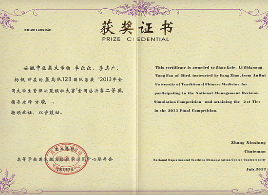 在刚刚结束的第五届全国老员工管理决策模拟大赛总决赛中,由公司卓乐乐、李志广、杨帆三位同学组成的“菜鸟123”团队,不畏强手,敢于拼搏,最终获得总决赛全国二等奖。