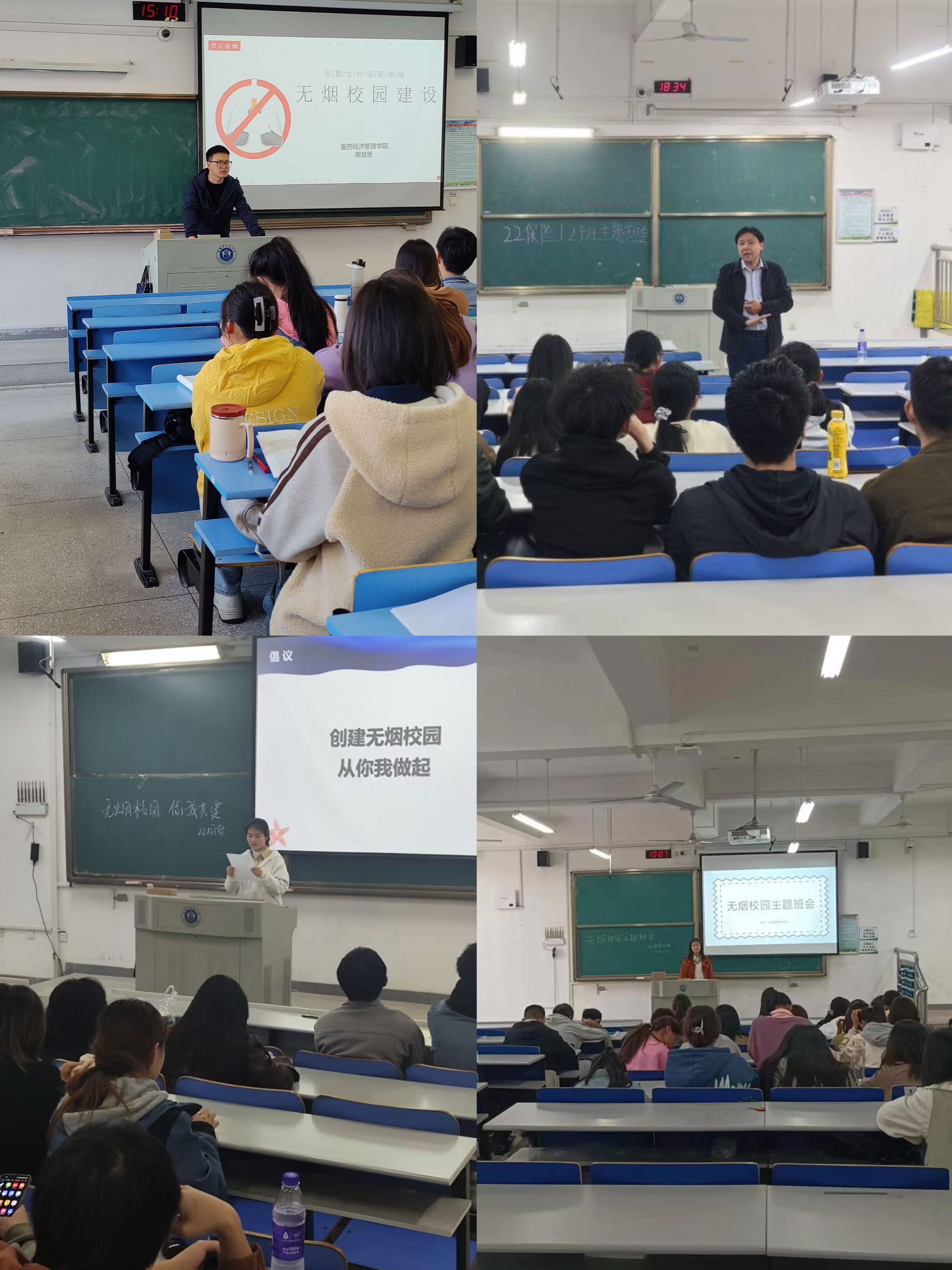 各班级辅导员呼吁全体同学要树立正确的健康观念,养成良好的生活习惯,及时改掉生活中抽烟的不良行为,为建造无烟校园贡献自己的一份力量。