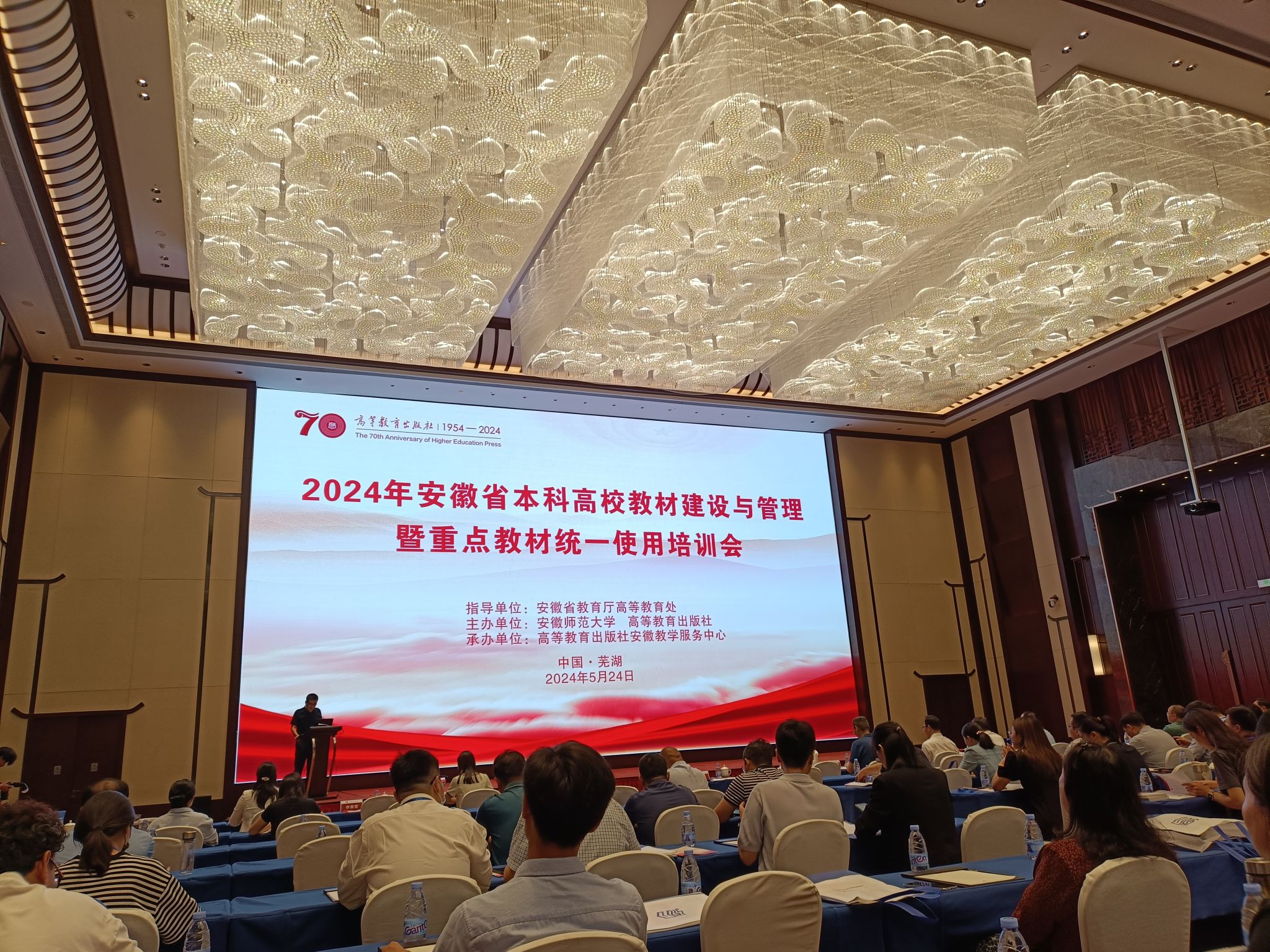 5月24日,由安徽师范大学、高等教育出版社主办,高等教育出版社安徽教学服务中心承办的2024年全省本科高校教材建设与管理暨重点教材统一使用培训会在芜湖举行。安徽省教育厅高教处相关领导、部分普通本科高校分管教学的校领导、教务处处长、分管教学副处长、所涉马工程重点教材教公司系主要负责人及分管教学副经理、讲授《习近平法治思想概论》《管理学》《艺术学概论》三门课程的授课教师等有关人员出席参会。公司教师胡孝权、张静、王野飞参加了本次会议。