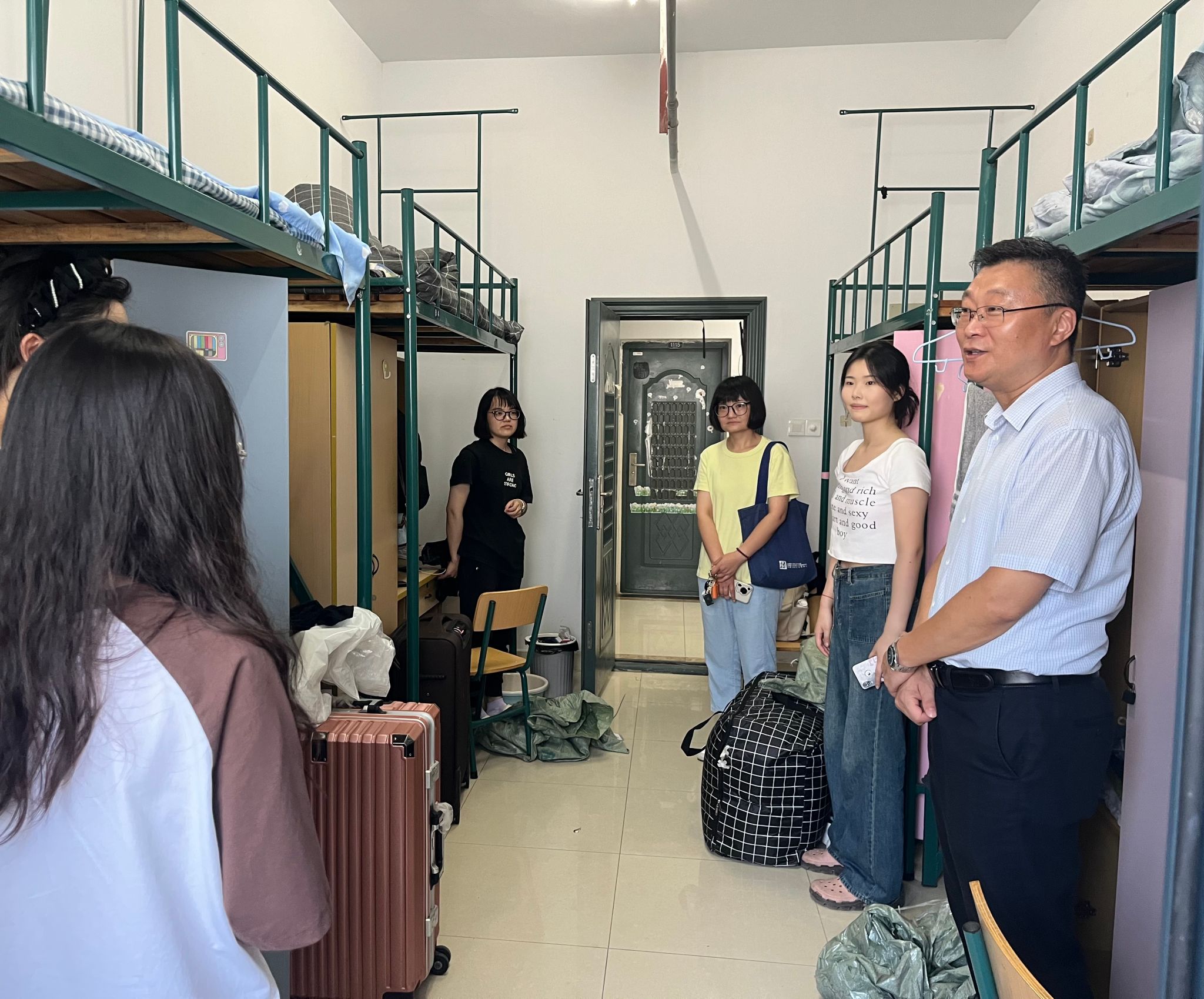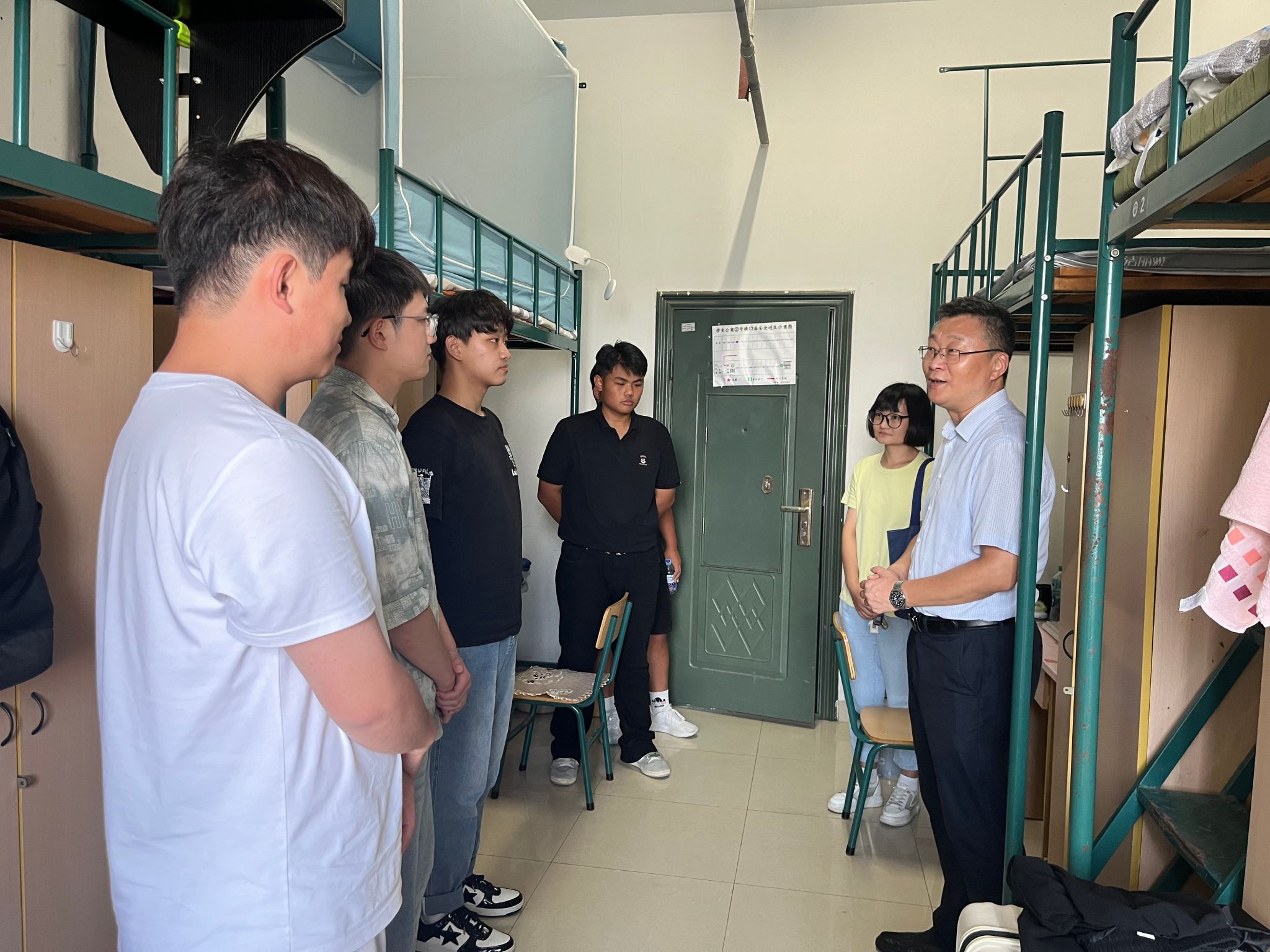 下午公司党委书记冯鑫,党委副书记、纪委书记张博以及研究生辅导员走访了新生宿舍,了解新同学的入住情况和相关需求。冯鑫欢迎同学们加入英国365集团这个大家庭,他希望同学们一要与室友们和谐相处,共同营造一个温馨、舒适的生活环境;二要注意保持宿舍的整洁和卫生,定期打扫宿舍,整理个人物品;三要注意安全,不使用违规电器,防止发生火灾等意外事故,同时要提高警惕,谨防电信诈骗。