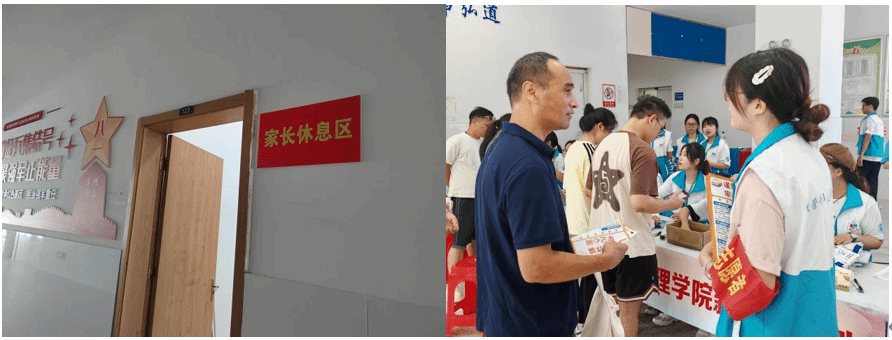 在迎新现场,公司还设置了党员先锋岗和家长休息区,为远道而来的家长提供周到的服务,也帮助家长们答疑解惑,让他们对孩子未来四年的生活有所了解和放心。