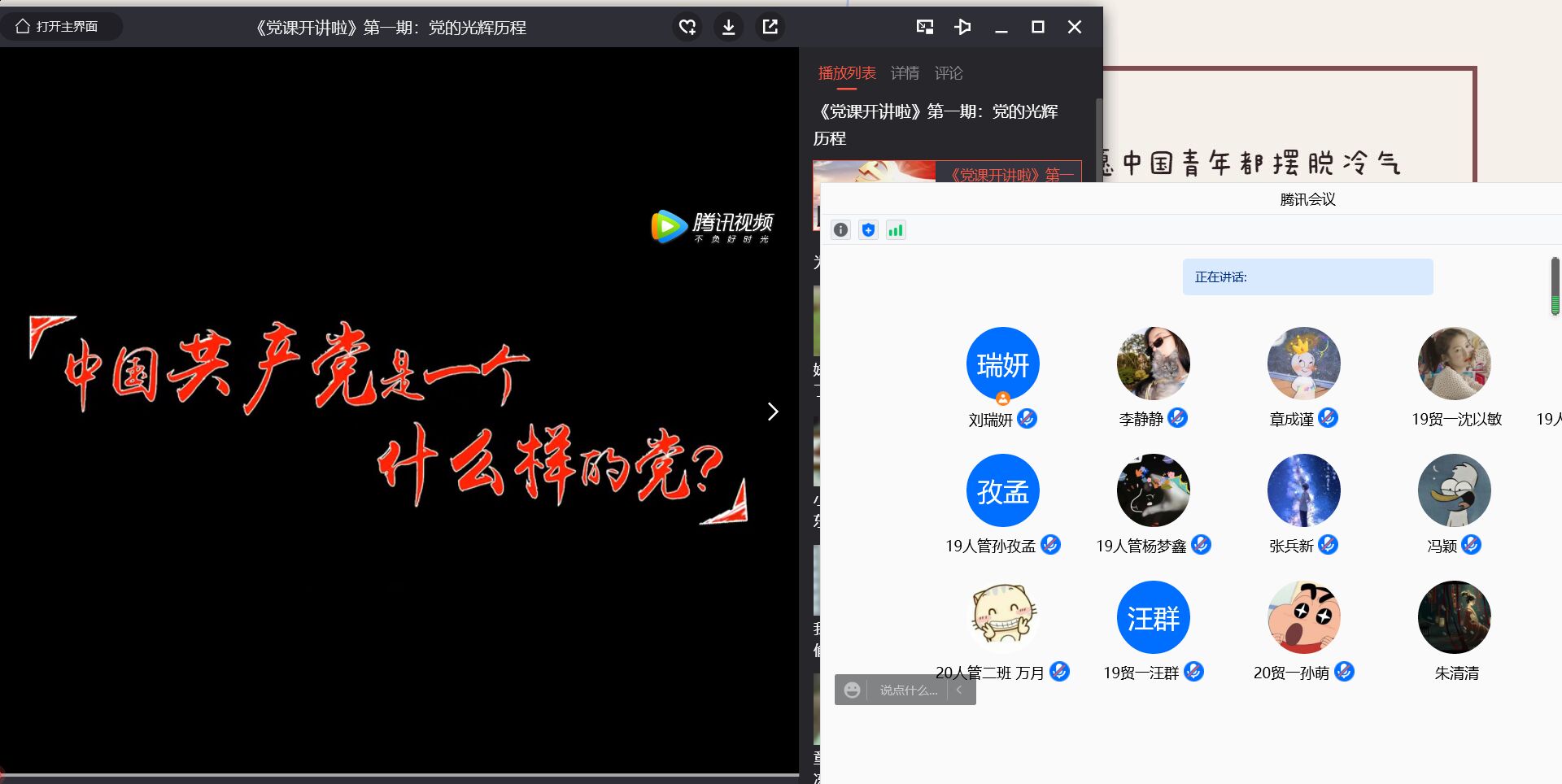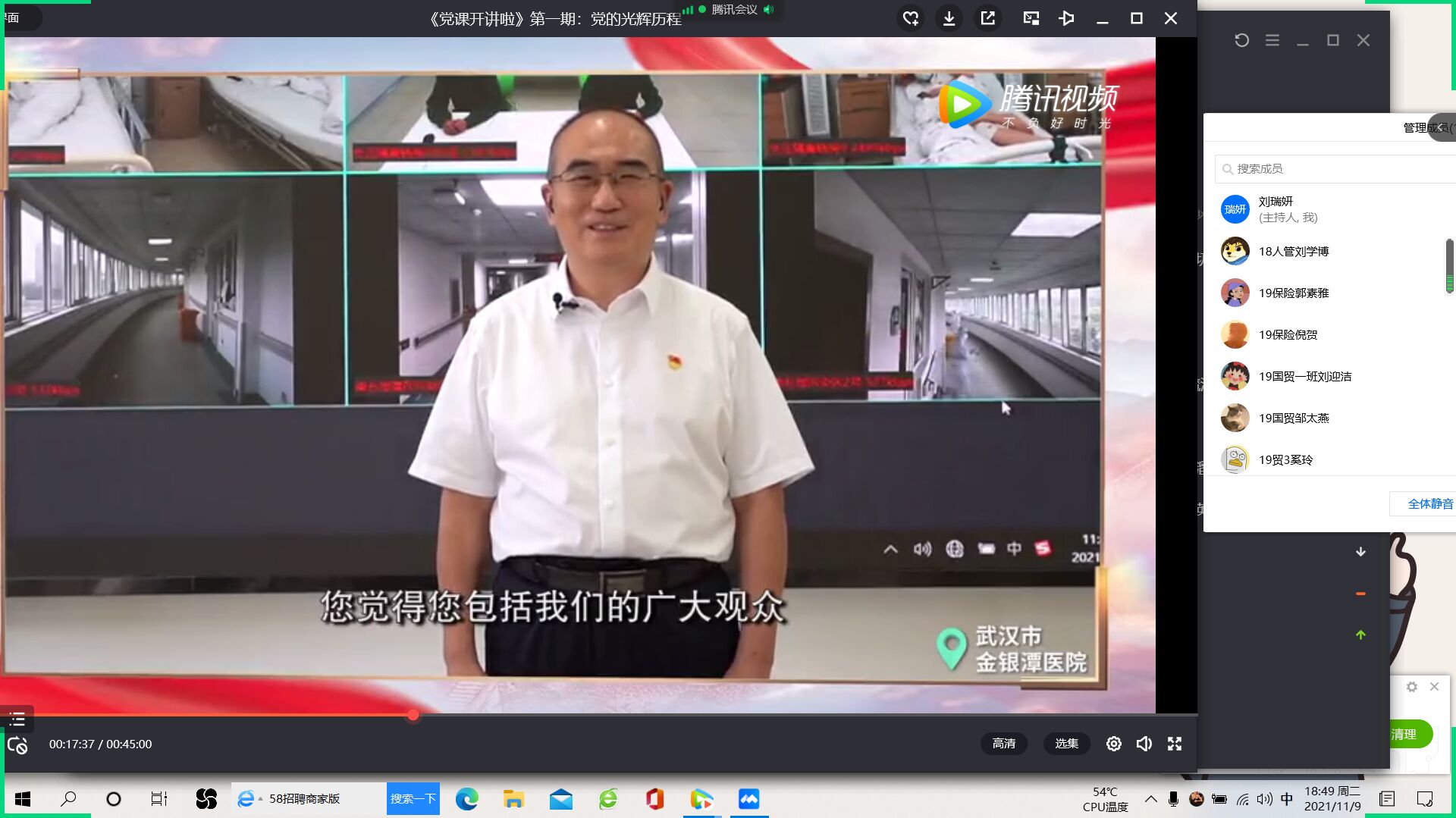 11月9日晚,为进一步提高入党积极分子的政治理论素质,深入学习贯彻落实党的十九大精神,英国365集团分党校按照公司党校要求,组织第59期121名入党积极分子通过线上腾讯会议形式集中收看《党课开讲啦》第一期《党的光辉历程》。
