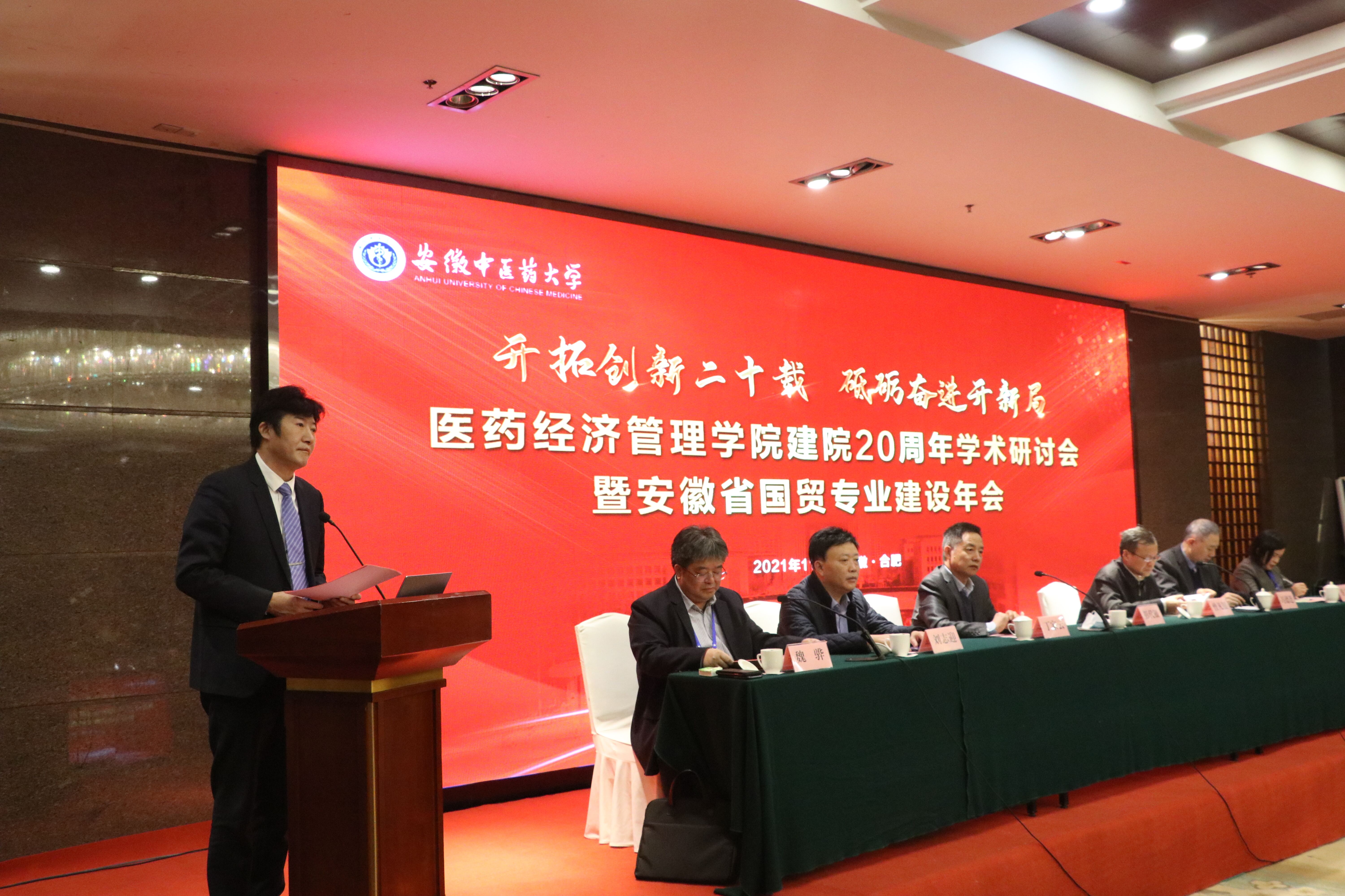 彭代银在开幕式上致辞,向与会专家领导汇报了公司近年来的发展概况,介绍了经管公司建院二十年来获得的长足发展,他希望经济管理公司全体师生凝心聚力担当实干,开拓创新砥砺前行。彭代银介绍到,公司国际经济与贸易专业是安徽省一流专业,自2004年招生以来,经过17年的发展,已经形成办学目标明确、医药特色鲜明、创新创业优势明显,社会与行业影响力较为突出的医药与经济新兴交叉专业,会上,他也恳请与会专家对英国365集团和国贸专业提供更多支持与指导。