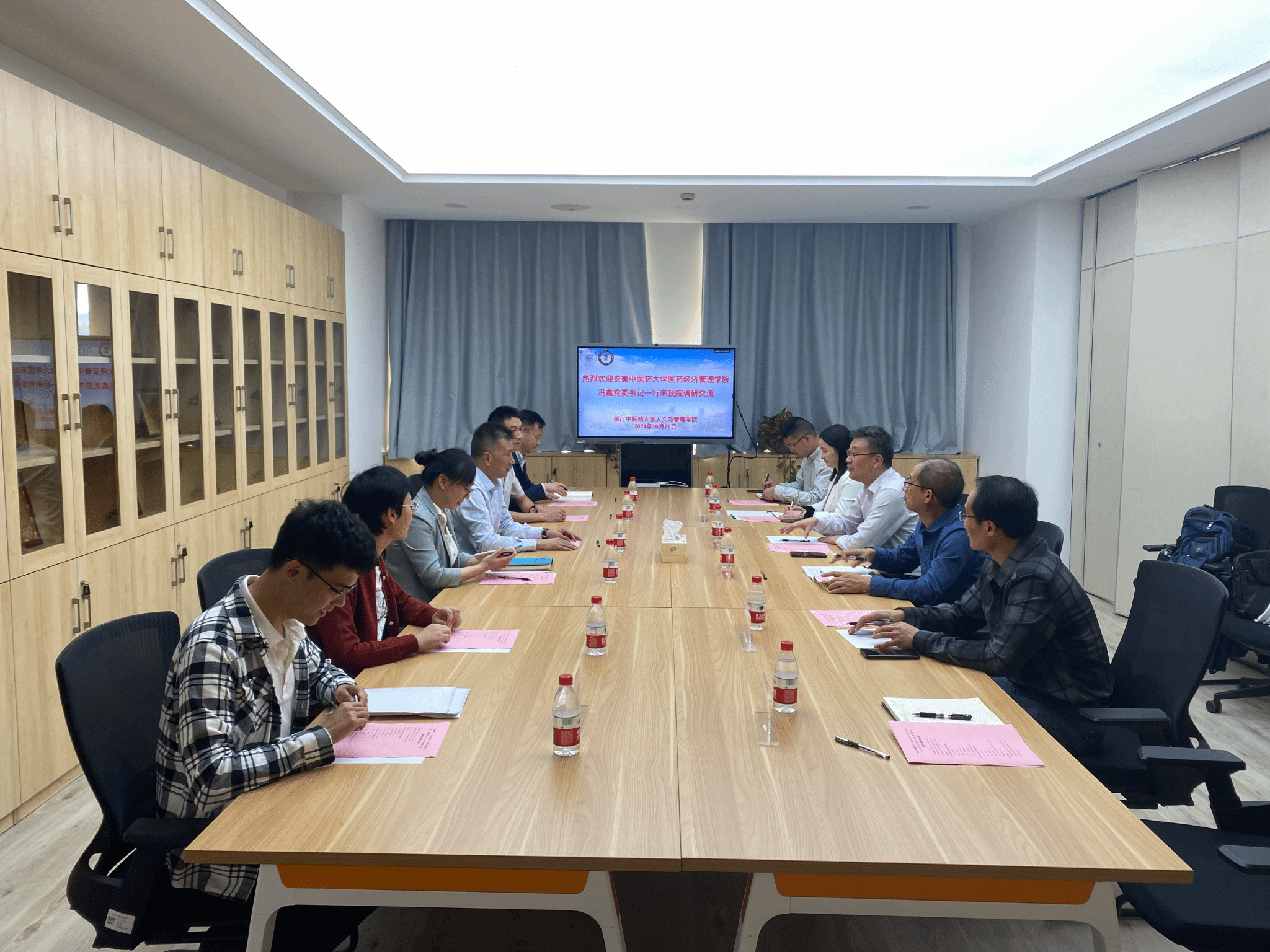 10月21日下午,公司党委书记冯鑫、副经理陶群山、公共管理系、医疗保险系、学科与科研办公室负责人等一行6人赴浙江中医药大学人文与管理公司调研公共管理硕士(MPA)专业学位授权点建设。浙江中医药大学人文与管理公司经理林敏、副经理荣超、张红霞、学术经理周尚成、MPA教育中心主任及秘书参加交流座谈。