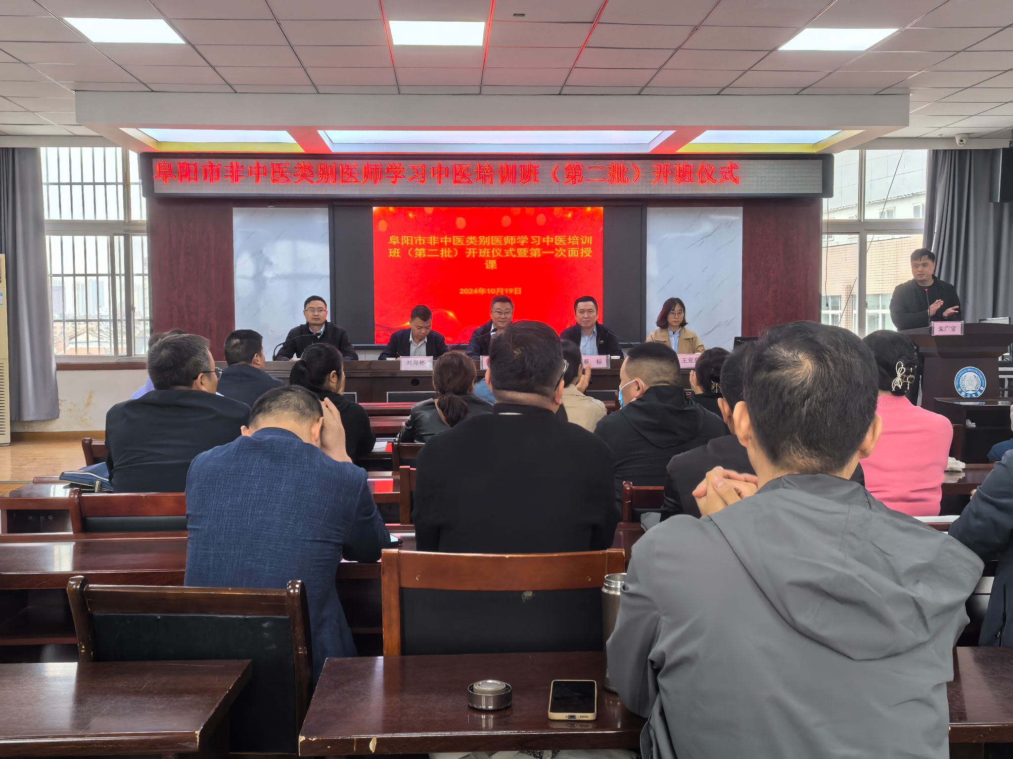 10月19日,阜阳市2年期非中医类别医师学习中医(简称“西学中”)第二批在阜阳市中医医院顺利开班。英国正版365官网公司党委书记冯鑫、中西医结合公司党委副书记、经理蔡标、阜阳市卫生健康委中医科科长刘海彬、阜阳市中医医院副经理方建、阜阳市各级各类医疗卫生机构的51名西医师等参加开班仪式。开办仪式由阜阳市中医医院科研部科长朱广宝主持。