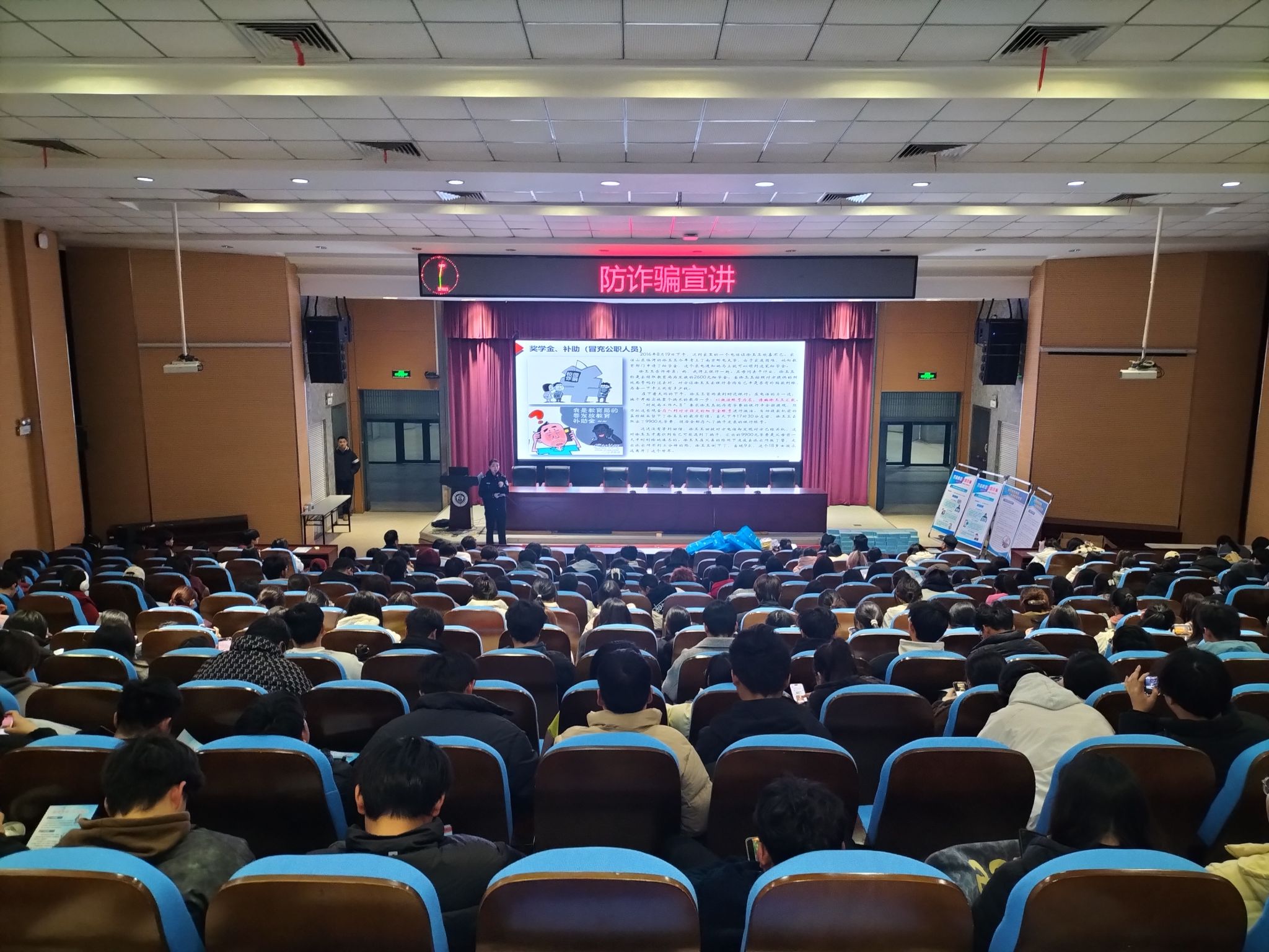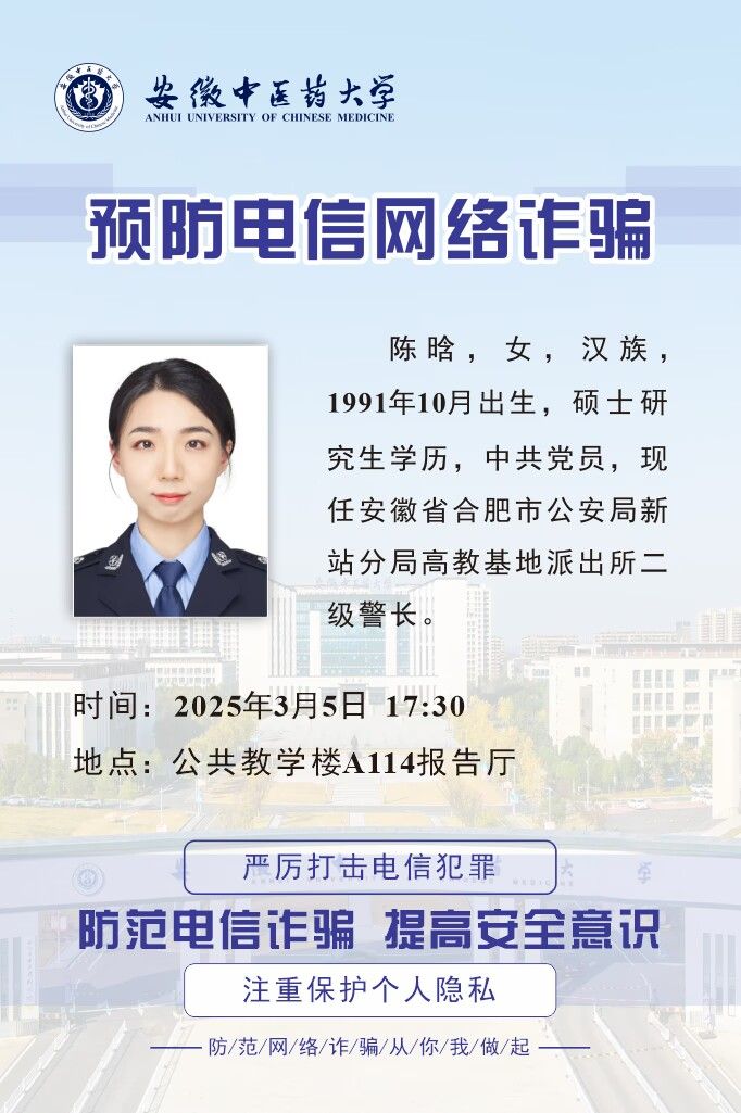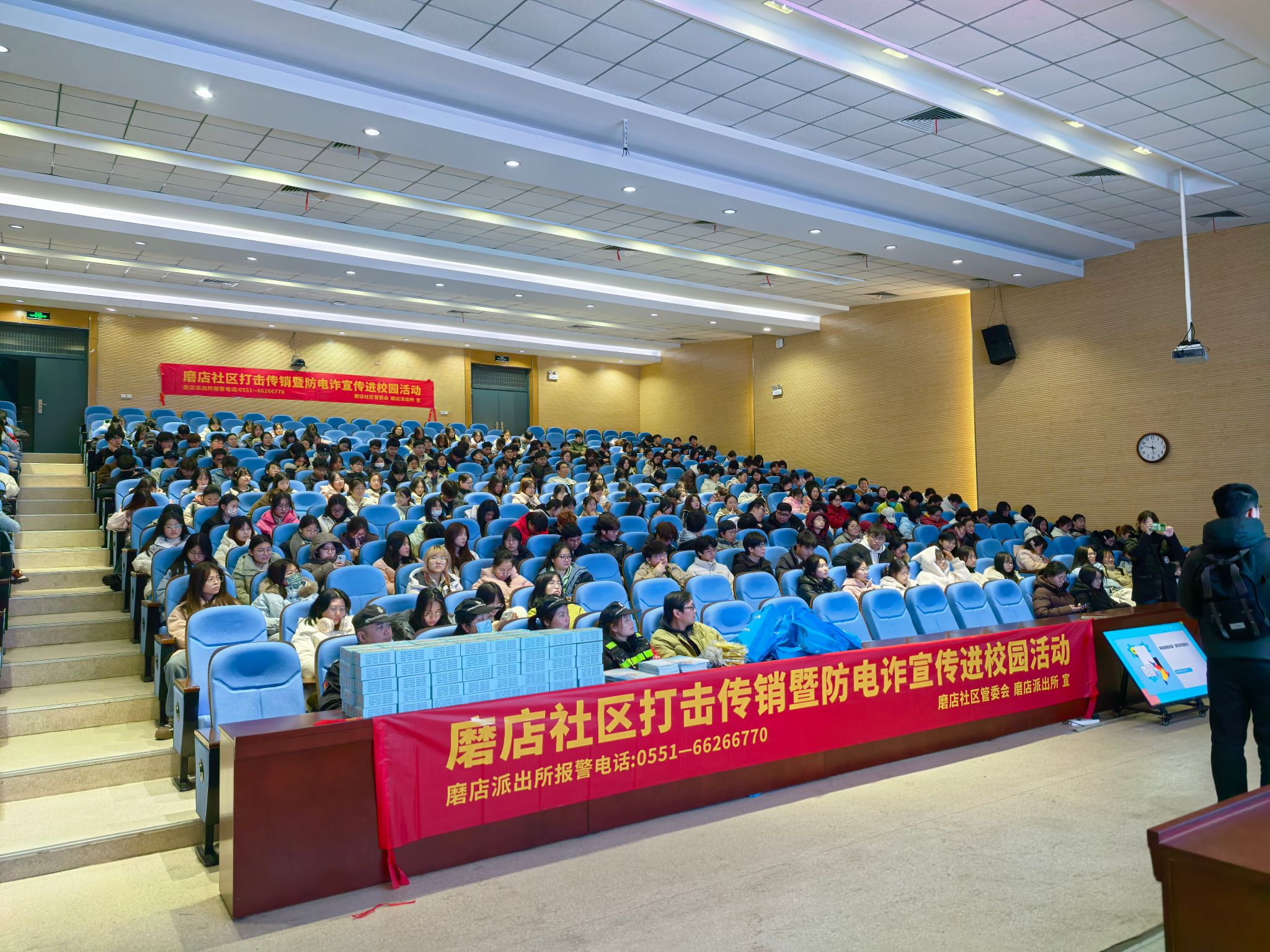 同时,公司联合磨店社区,特别邀请了磨店派出所的反诈专家陈晗警官为全院师生举办了一场防电诈专题讲座,讲座现场气氛热烈,师生们认真聆听,积极互动。专家结合近年来发生的典型案例,深入剖析了电信诈骗的特点和危害,并详细讲解了如何识别和应对各类诈骗手段,通过实际案例讲解,提高同学们预防诈骗的能力。