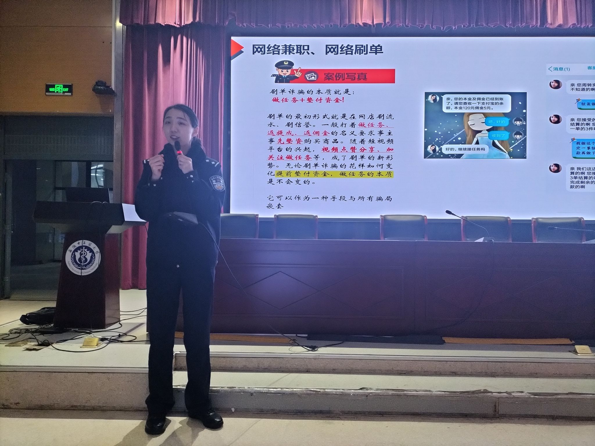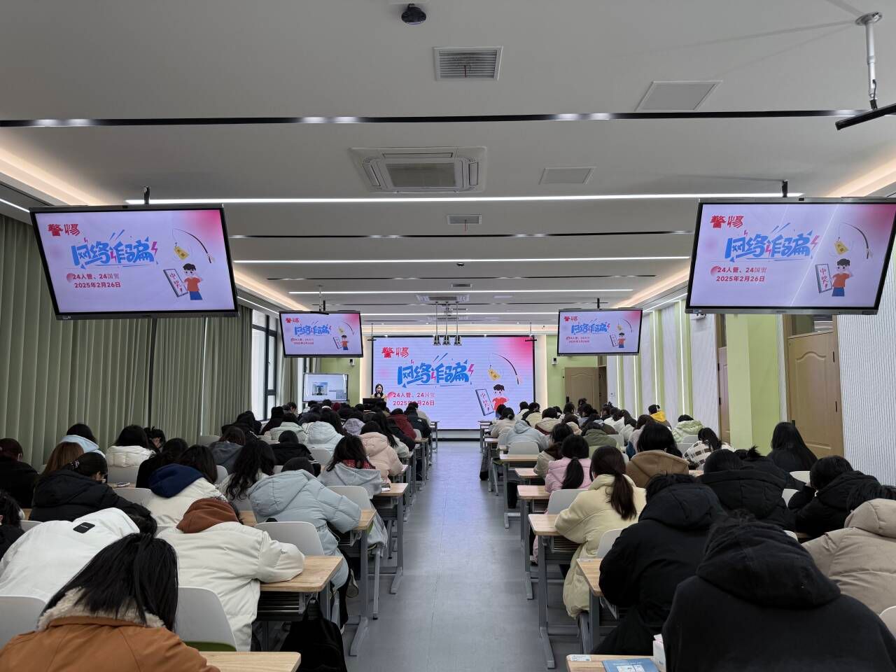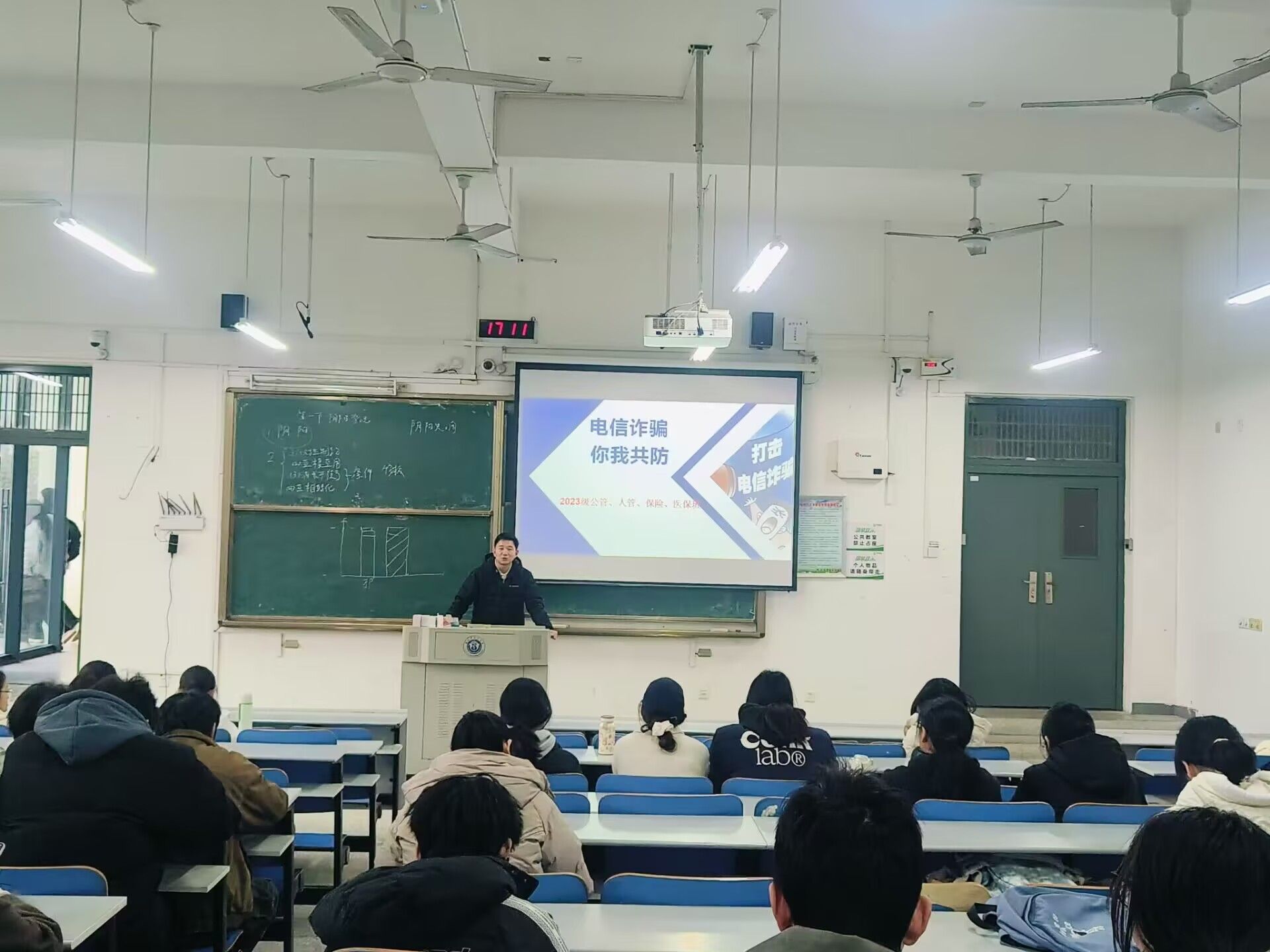 同时,公司联合磨店社区,特别邀请了磨店派出所的反诈专家陈晗警官为全院师生举办了一场防电诈专题讲座,讲座现场气氛热烈,师生们认真聆听,积极互动。专家结合近年来发生的典型案例,深入剖析了电信诈骗的特点和危害,并详细讲解了如何识别和应对各类诈骗手段,通过实际案例讲解,提高同学们预防诈骗的能力。
