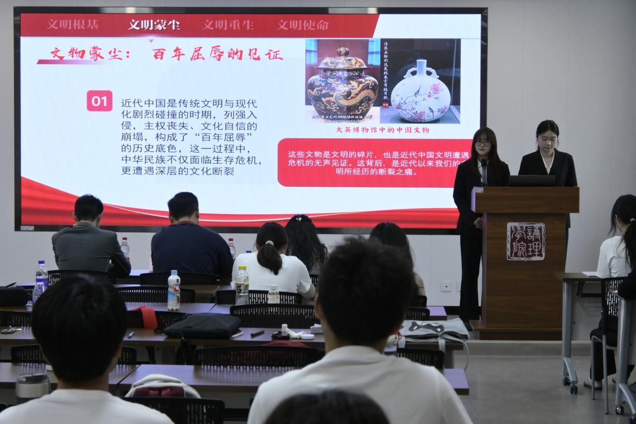 比赛现场精彩纷呈,各参赛队伍以讲解、情景剧、师生问答、集体朗诵等多元形式,融合古今中外案例,生动诠释“文明”内涵。