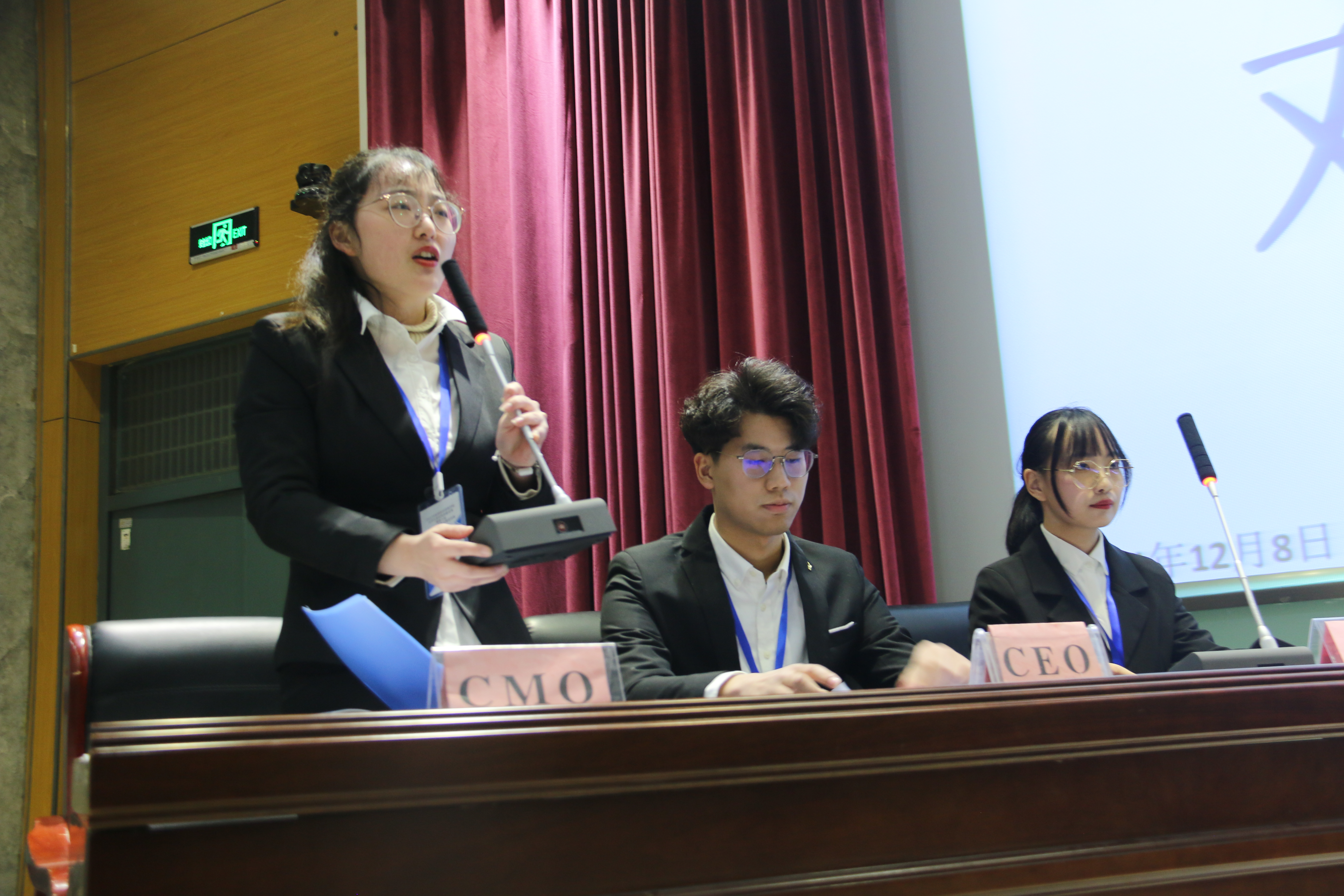 决赛现场,选手们充分运用学习到的经济理论和管理知识,通过PPT汇报、双方答辩、老师提问、总结陈述等环节,表达自己对模拟企业经营中各状况的深刻理解,以及战略规划的优点和不足。