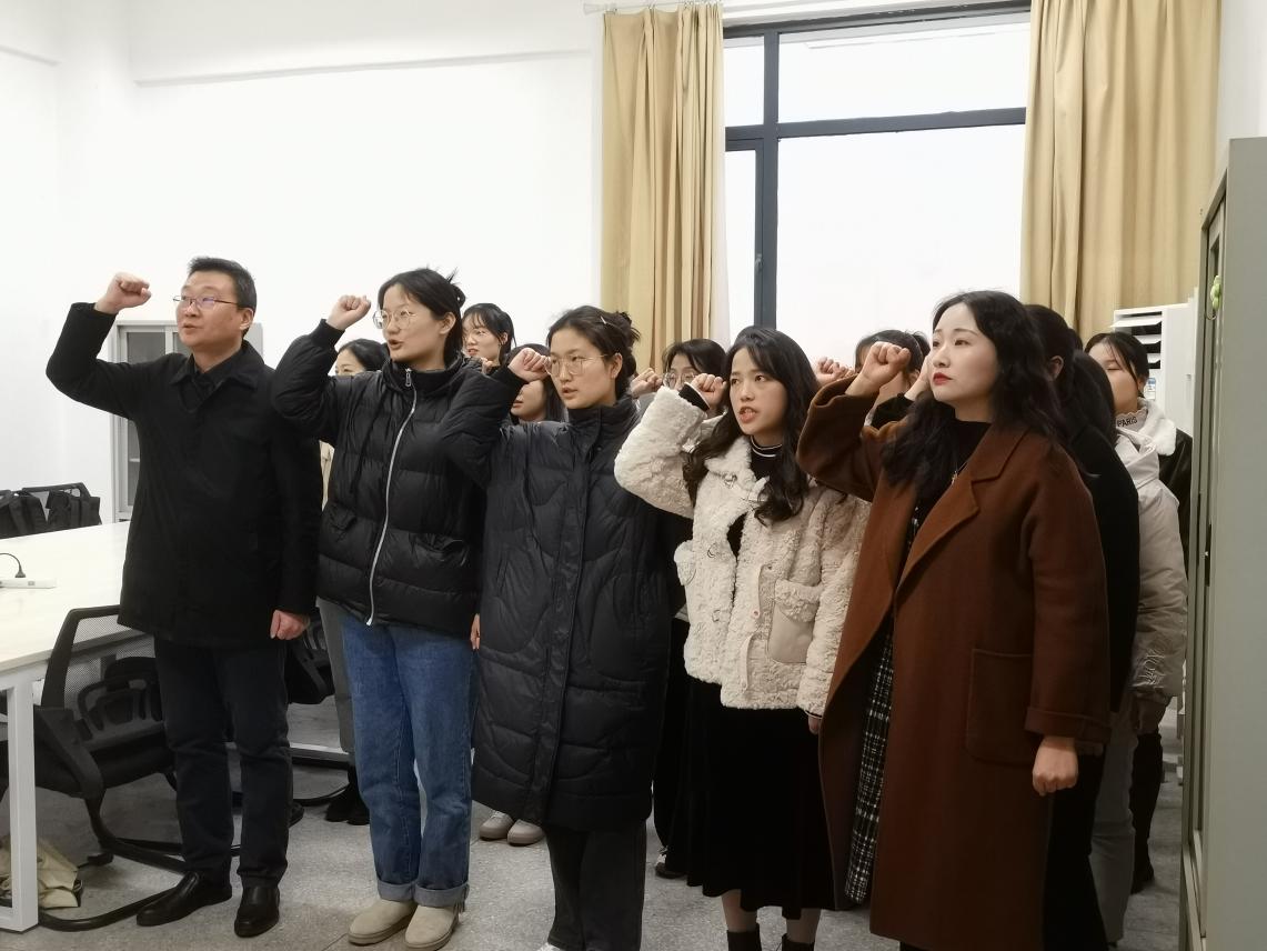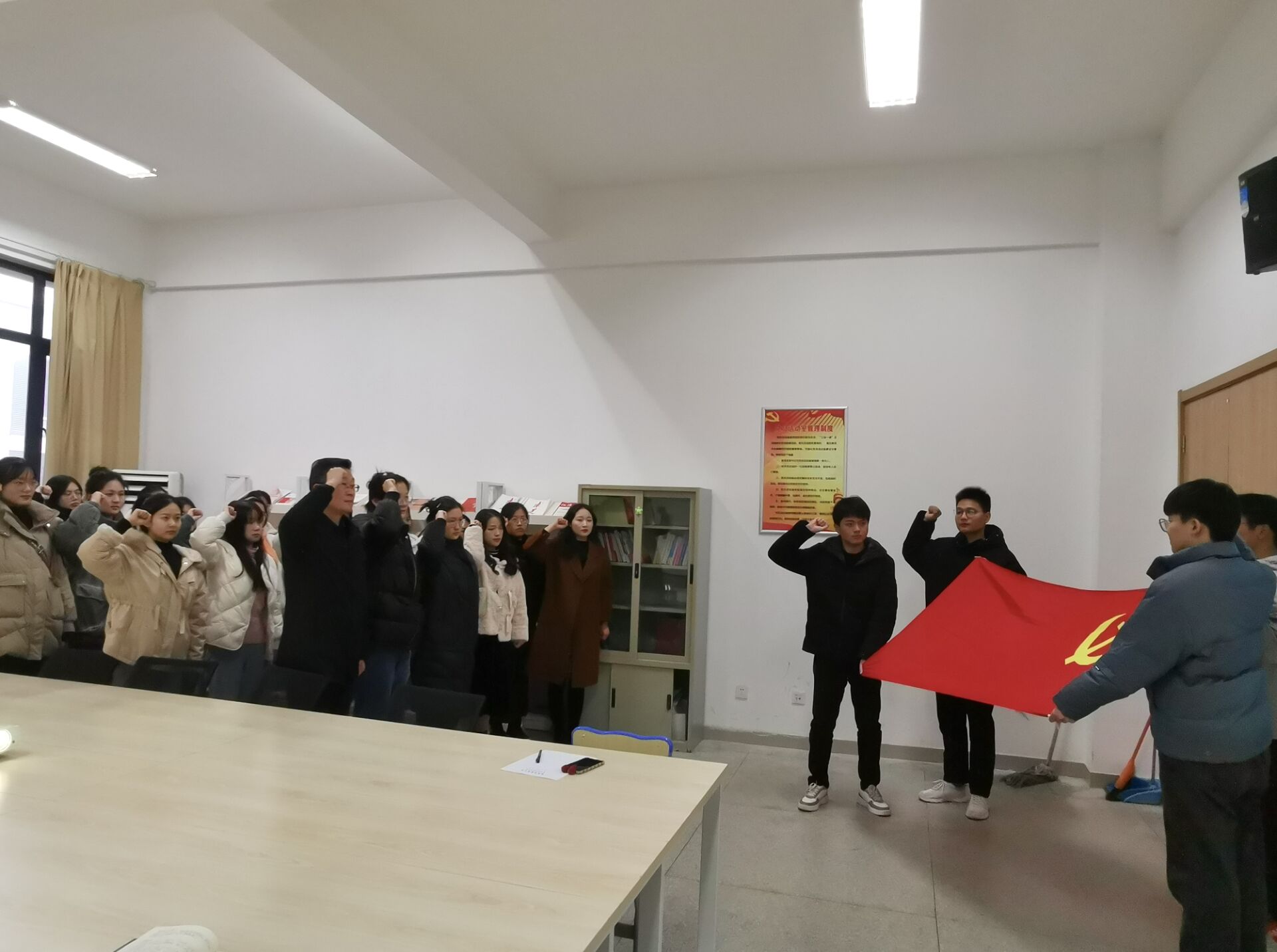 首先进行入党宣誓,由孙孝涧领誓,全体党员面对鲜红党旗,高举右拳,庄严宣誓。