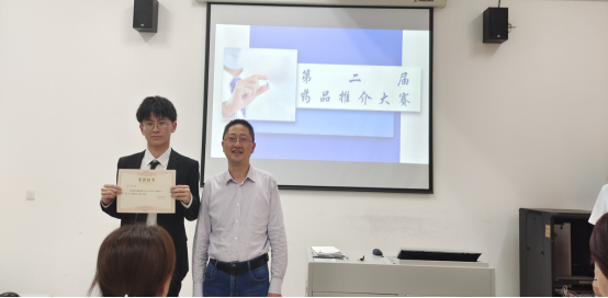 本次比赛经过班级内部的角逐,共有12支队伍进入院部决赛,决赛采取PPT汇报的形式,在比赛前,丰志培经理表示此次比赛不仅与国贸专业的医药商品学课程学习紧密相关,是课程教学的重要组成部分,也是公司以赛促学、以赛促改、推进课程教学改革,提升员工实践能力,推进国际经济与贸易专业省级一流专业建设的重要举措;对于培养懂医药、通经济、会管理、能创新、有责任的复合型人才培养具有重要意义。最后,丰志培经理也祝愿所有参赛队伍能够赛出水平,取得好成绩。