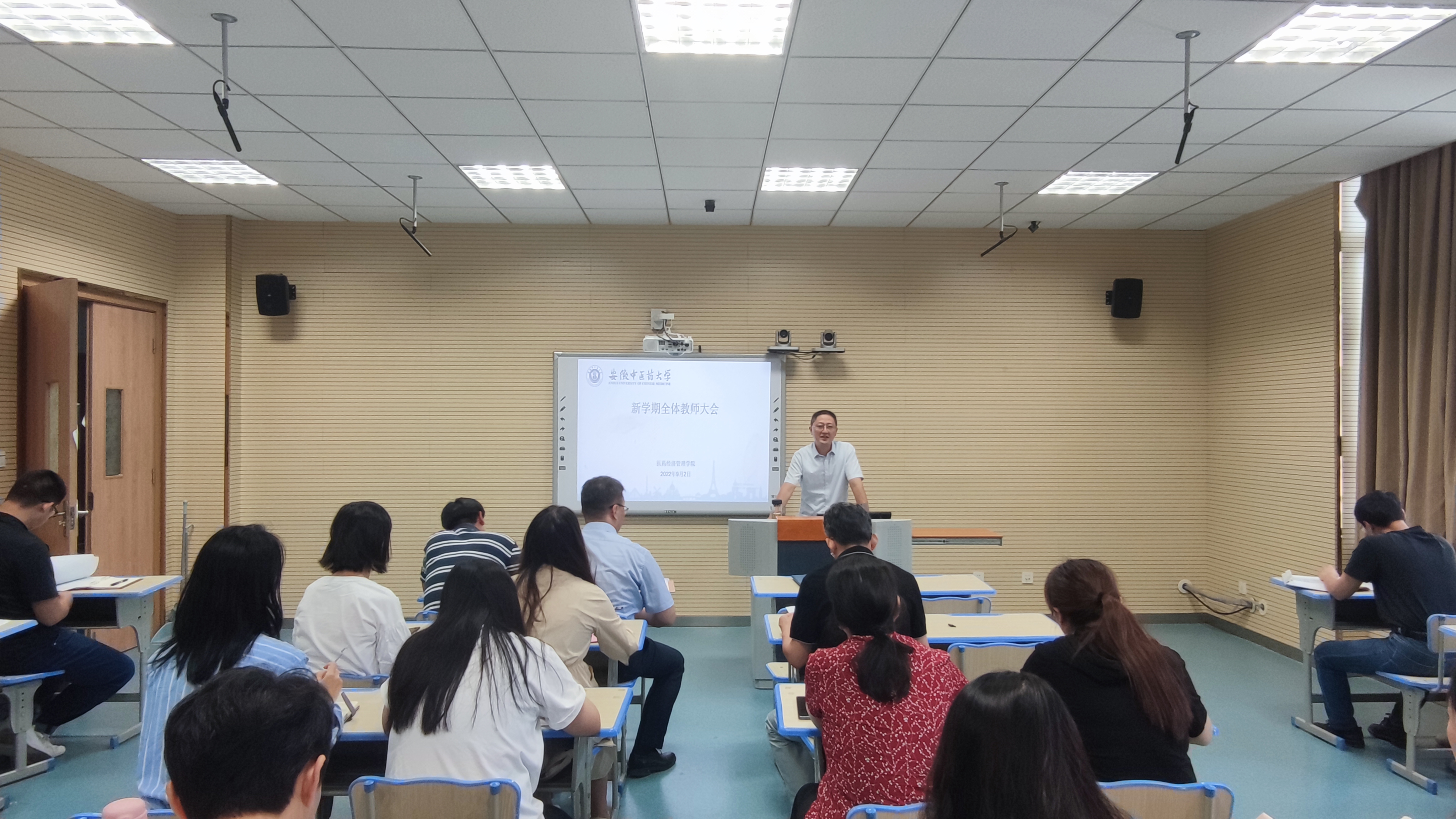 会上,冯鑫书记宣读公司任命文件《关于倪飞等同志任系、实验(实训)教学中心、科研中心主任(副主任)的通知)》,同时他强调全体教师一要解放思想,振奋精神,与公司同频共振,同向同行,以主人翁的态度积极投入到“振兴中医药”的宏大事业;二要对标对表,狠抓落实,对标全国中医药院校一流经管学科与专业,扎实推进“三年行动计划”和公司"十四五"规划各项重点任务工作;三要抢抓机遇,勇于担当,立足本职岗位敬业奉献,为公司改革发展贡献经管力量;四是要稳字当头、稳中求进,安全与发展并重,切实做好当前疫情防控和新学期开学教学、新生报到和员工管理等各项工作。营造安全稳定校园氛围,以实际行动和优异成绩迎接党的二十大胜利召开。