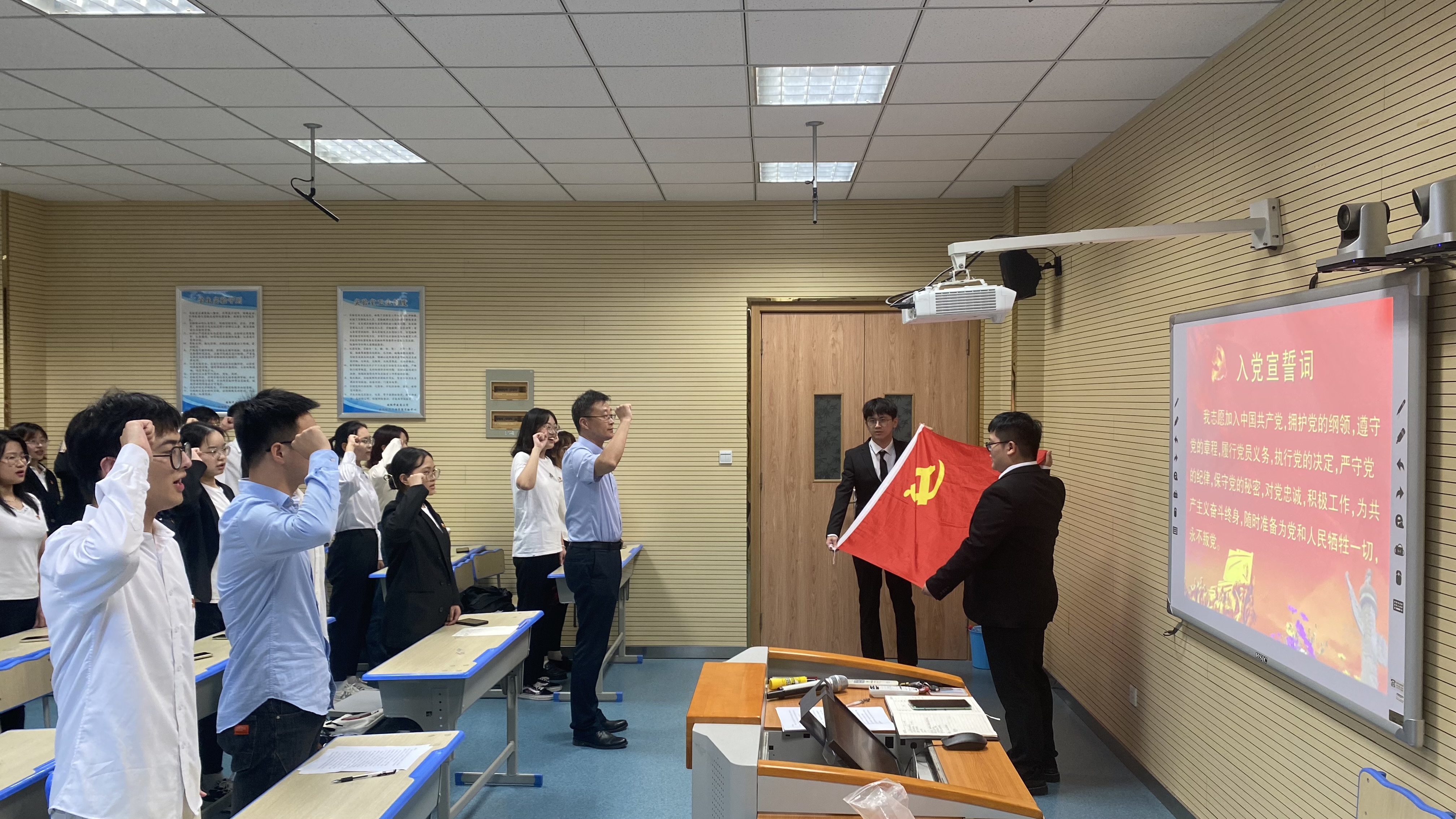 宣誓环节由冯鑫书记领誓,面对鲜红的党旗,47名新发展党员目光坚定,高举右手,立下铮铮誓言,誓言铿锵有力,掷地有声,庄严地表达了为共产主义奋斗终身的信心和决心。