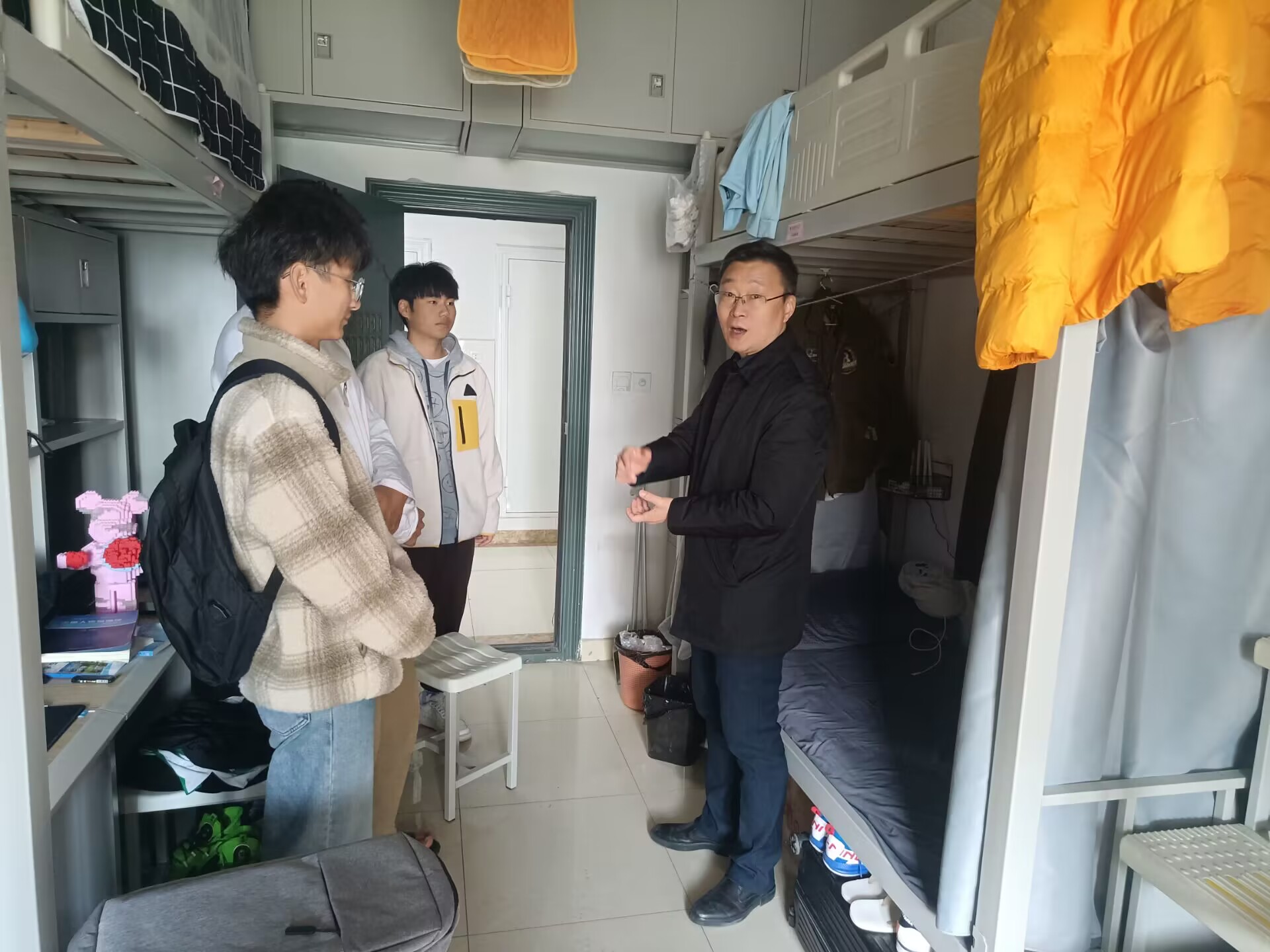 公司全体辅导员老师在近日也深入所带班级的每一个宿舍,在疫情防控、期末备考、用电安全、宿舍卫生和防诈骗等方面和同学们做了细致的交流和叮嘱。(陈仑松/文图 冯鑫/审核)