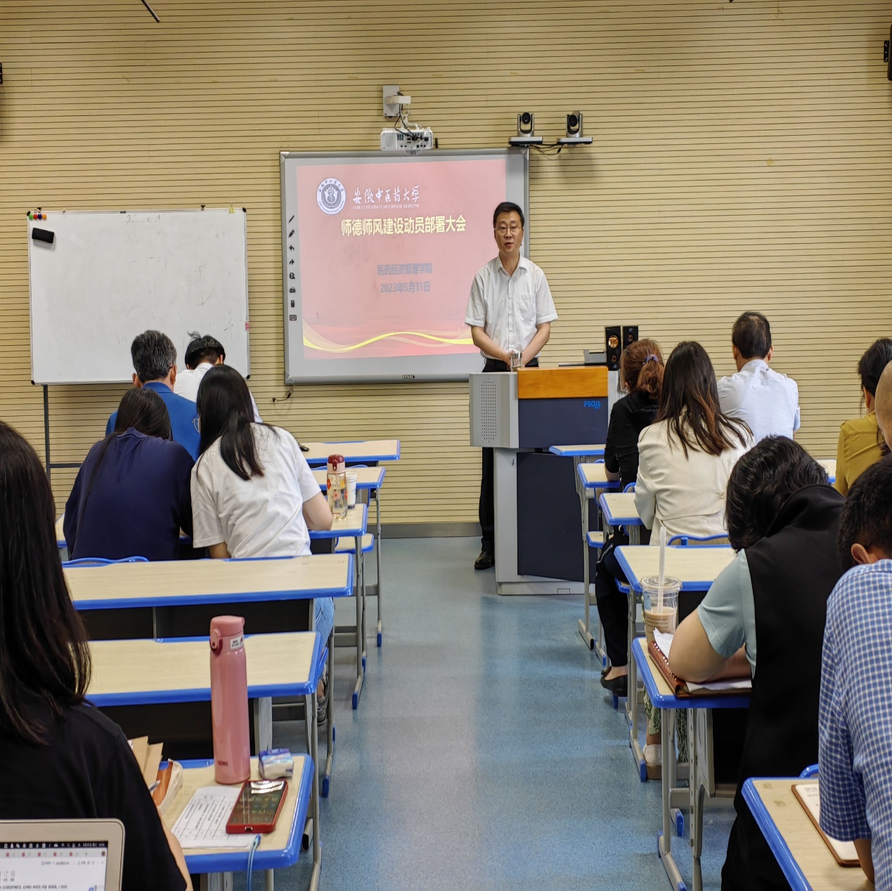 冯鑫指出,党的十八大以来,习近平总书记多次就师德师风建设发表重要讲话,习近平总书记关于教育工作的一系列重要论述,为加强新时代师德师风建设提供了行动指南和根本遵循。高校要把师德师风建设摆在首要位置,切实用习近平新时代中国特色社会主义思想武装教师头脑,推动教师成为先进思想文化的传播者、党执政的坚定支持者、员工健康成长的指导者。并强调,一要精心组织,强化落实,各支部、教研室要组织好师德师风建设专项行动。全体干部教师要认真开展自查工作,建立台账,立行立改;二要加强领导,压实责任,严格落实公司党委师德师风建设主体责任和党政同责、一岗双责工作要求。各系、教研室主任和个人也要担负起师德师风建设的重要责任;三要注重实效,营造氛围,师德师风建设是一项系统工程,要常抓不懈,全院上下要紧紧围绕立德树人的根本任务,把强化师德师风建设作为加强教师队伍建设的首要任务,营造师德师风良好氛围。