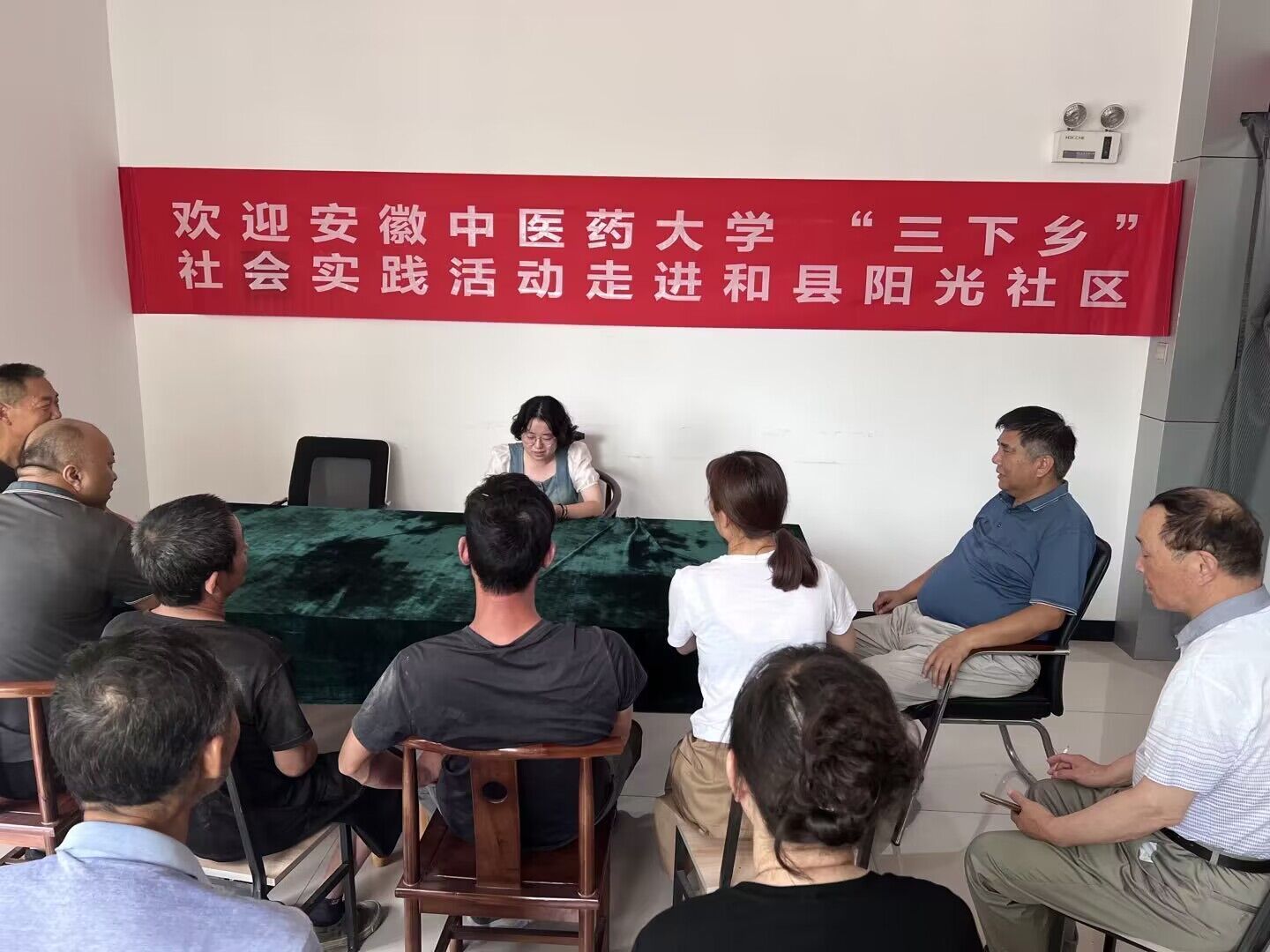 除了调研活动,实践团队也在合肥市左店镇和马鞍山和县阳光社区开展了中药知识宣讲活动,给当地村民科普“中医药+乡村振兴”相关知识。千秋中医药,今朝风日好。一纸方传承千载,一缕药香跨越古今。岐黄之术应惠泽渔民;产业振兴是乡村振兴的重中之重。