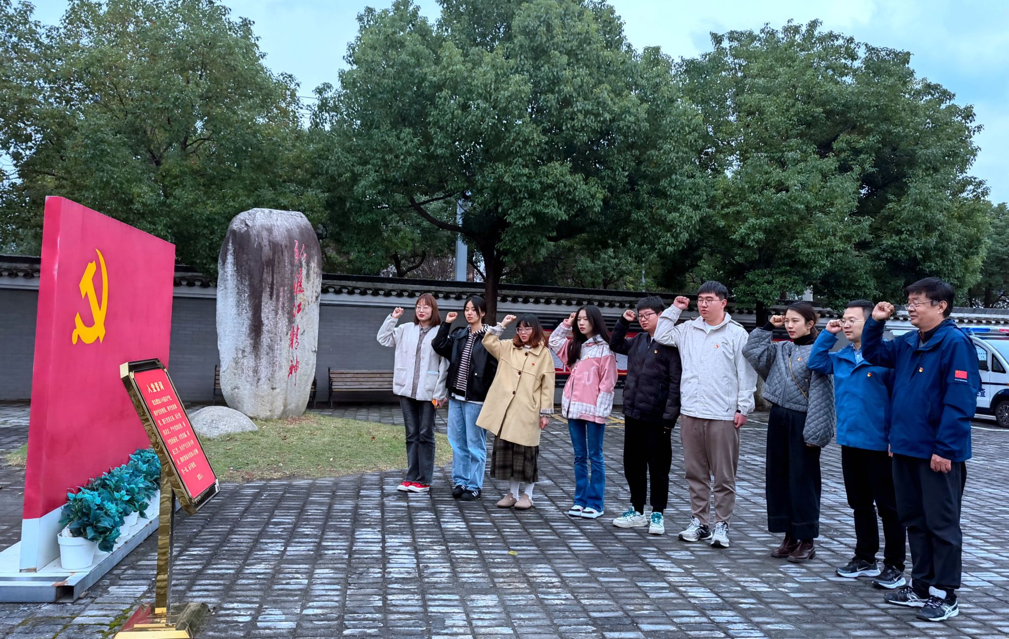 在渡江战役总前委旧址广场上,面向鲜红的中国共产党党旗,郭铮带领党员同志们重温入党誓词,誓言声铿锵有力,激励每一位党员以党章规范自己的言行,牢记党的宗旨,履行党员义务,做一名合格党员。