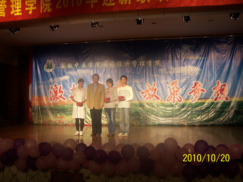 会上院领导分别为2009-2010学年荣获“十佳青年”、优秀员工、优秀员工干部、单项标兵、暑期实践调研报告获奖者以及荣获省十二届运动会铜奖的同学颁发荣誉证书并合影留念。
