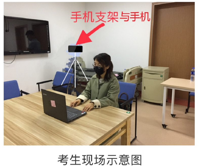 远程网络复试采用“双机位”视频模式。考生需要准备两部带摄像头和语音功能的设备,包括台式机、笔记本电脑、智能手机、手机支架等。一台设备(第一机位)从正面拍摄,另一台设备(第二机位)从考生侧后方45°拍摄,距离适当,确保拍摄完整,复试组教师能够从第二机位清晰看到第一机位屏幕。使用4G/5G的手机流量或稳定的WIFI网络完成考试全过程。