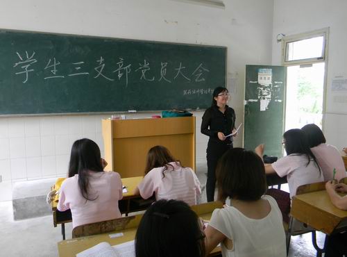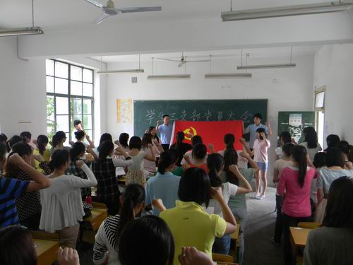高霞宣读了该支部新发展的24名预备党员名单,在向全体新党员表示祝贺的同时,从坚定理想信念、加强理论学习、积极投身创先争优活动三个方面对新党员提出了明确的要求,随后进行了加强党支部文化建设的理论学习活动,最后高霞带领全体党员面对党旗庄严宣誓。