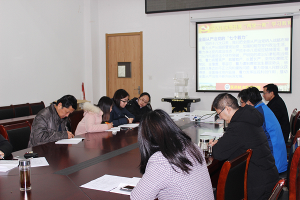 吴成海首先带领大家学习全会精神以及全会公报主要内容。习近平总书记在全会上做重要讲话,他在讲话中指出,全面贯彻落实党的十八届六中全会精神要以新的认识指导新的实践,全面从严治党要“七个着力”,全面从严治党取得“九大成效”,开展党风廉政建设和反腐败斗争有“四点重要启示”,全面从严治党有“六个主要任务”还提出了全面从严治党的新要求。全会总结了2016年纪律检查工作,习近平总书记充分肯定党的十八大以来全面从严治党取得的显著成效,明确提出当前和今后一个时期工作的总体要求和主要任务。全会号召,要紧密团结在以习近平同志为核心的党中央周围,深入推进党风廉政建设和反腐败斗争,不断取得全面从严治党新成效,交上让党和人民满意的答卷。吴成海强调,贯彻习近平总书记重要讲话精神要深刻把握纵深发展,一条主线贯穿始终;标本兼治,两大关键长期坚持;不忘初心,文化自信必须坚定;正人正己,打铁还需自身硬四个方面从严治党的新信号。