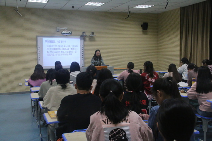 许梦楠围绕“党员的发展程序及要求”向学员们介绍了从入党积极分子到正式党员的发展过程和注意事项,以及过程中材料的书写格式和撰写要求。加强了学员们对入党要求的把握,确定了今后应该学习和发展的正确方向。