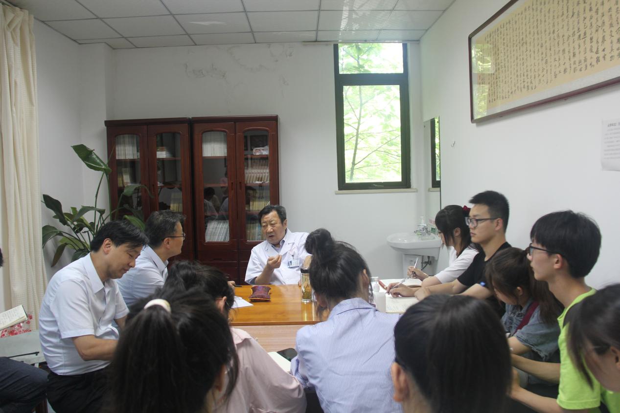 访谈中,张老和师生分享了自己的从医经历与所感所得。张老自幼患有哮喘,上初中时因哮喘发作而被迫辍学,后来在亳州经过中医诊疗治愈了哮喘,张老深感中医的神奇,遂拜师于自己的诊治医生,从此,他与中医结下不解之缘。张老说在学习过程中最难忘的是1979年张教授参加了全国选拔优秀青年中医药人才考试,以阜阳地区第一名的优异成绩选调到安徽中医公司第一附属医院。作为一名老党员,张老多次强调,如果没有党和组织的栽培,就没有他现在的成就。他感慨当今中医药能够迅速发展,离不开党和国家的支持,张老说:“必须要在党的领导下,才能传承好中医。”张老始终坚定对中医的信念,并机缘巧合前往海外会诊,用中医治疗好国际友人,提高中医的国际声誉。
