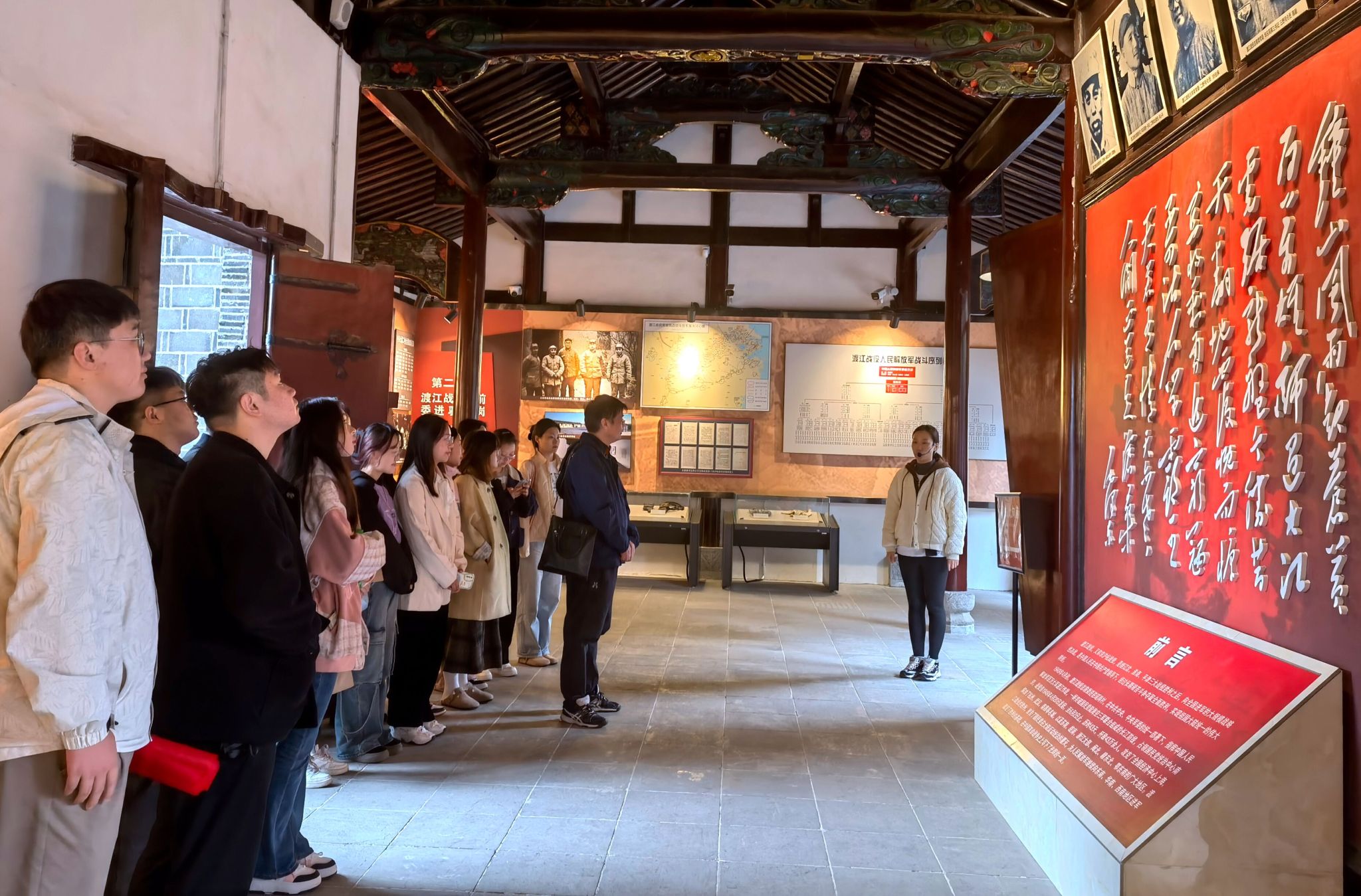 随后,全体师生乘车前往瑶岗渡江战役总前委旧址纪念馆参观学习。大家集中观看了渡江战役专题片《风起瑶岗 剑指江南》,在回顾党中央带领江北解放区人民群众进行轰轰烈烈的支前运动中,进一步坚定了理想信念。