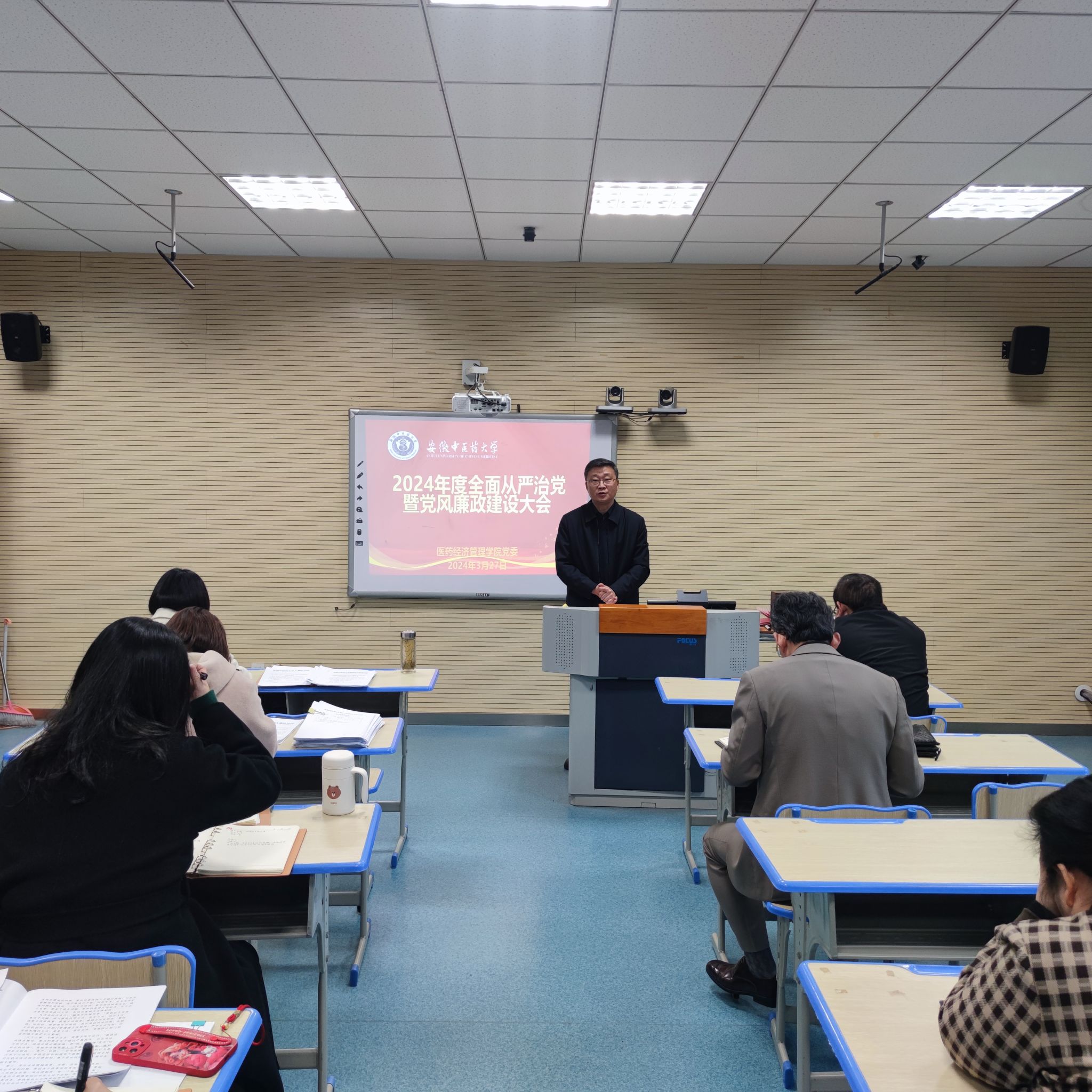 3月27日下午,公司召开全面从严治党暨党风廉政建设大会,公司党政领导、全体教职工参加会议,公司党委书记冯鑫讲话,公司党委副书记、纪委书记张博主持会议。