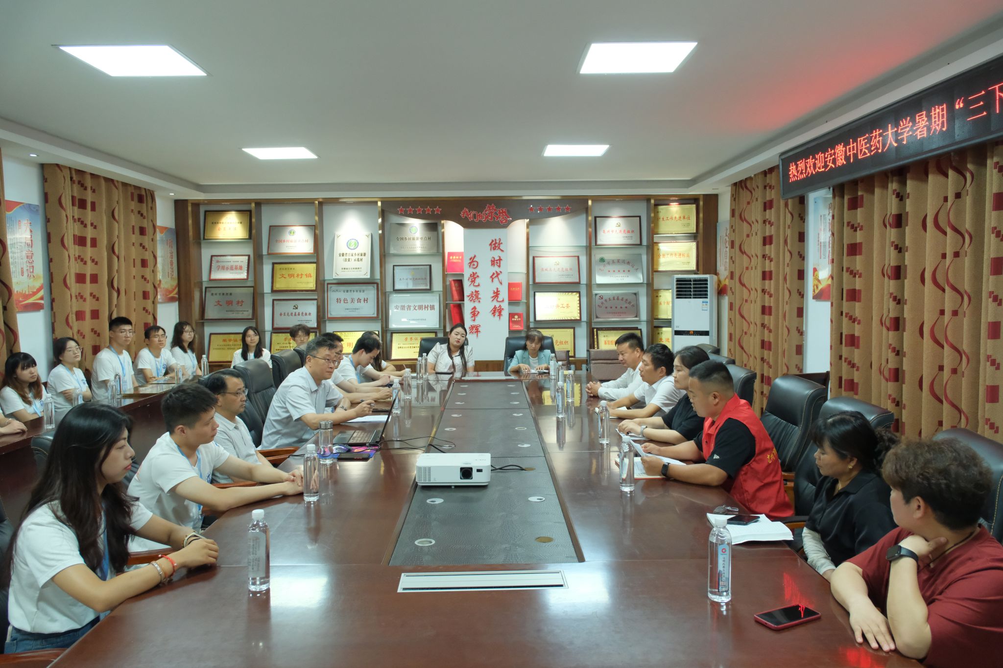 冯鑫介绍了公司的基本情况、办学特色,社会实践基地建设目的意义和主要内容以及本次暑期“三下乡”社会实践活动的主题,希望以共建社会实践基地为契机发挥公司在服务地方经济和中医药产业方面的优势和专长与药王村进一步加强交流合作,同时为青年老员工提供更多社会实践的机会与平台。