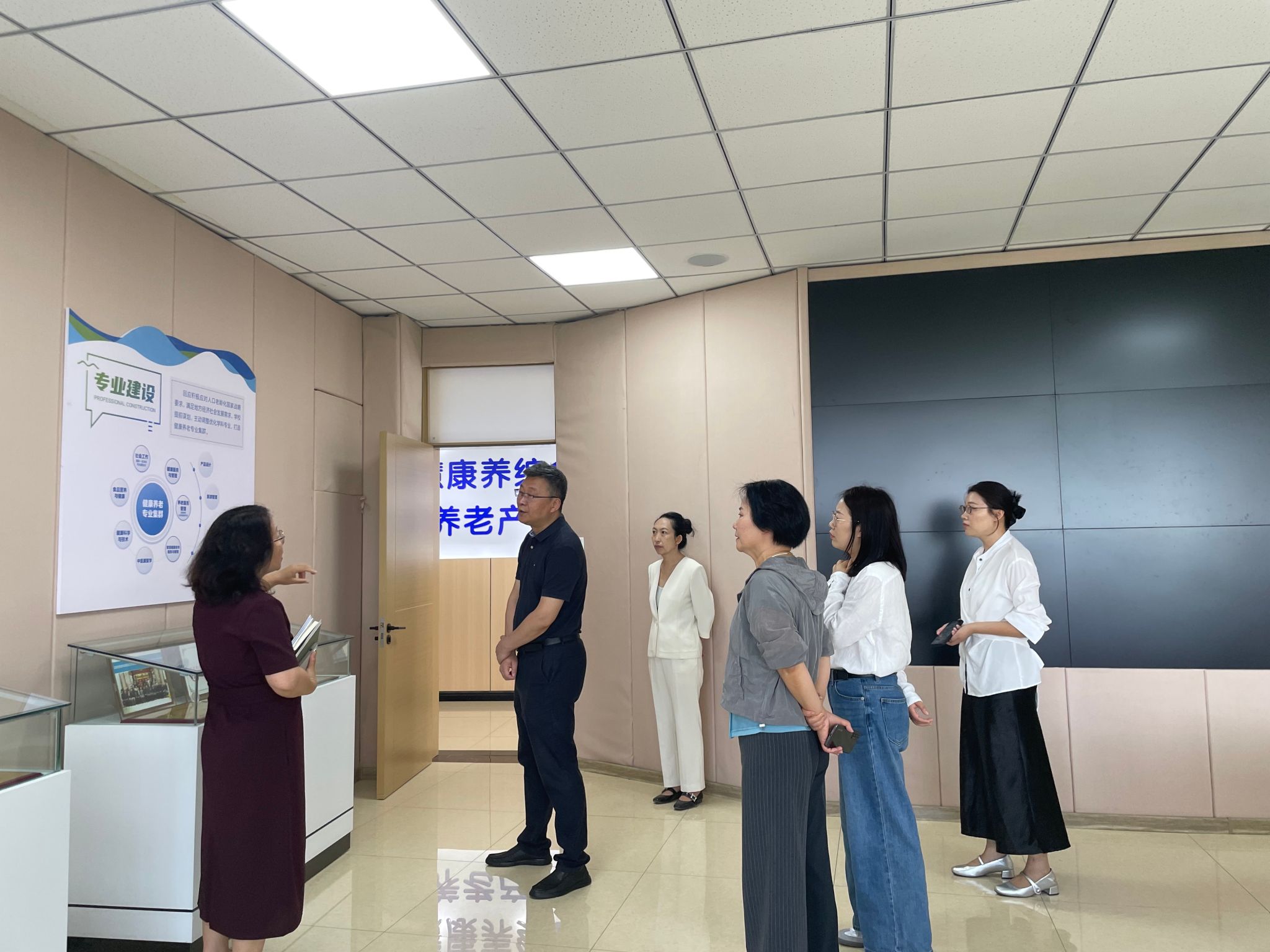 6月6日上午,英国正版365官网公司党委书记冯鑫、人力资源管理系、教学办一行4人赴山东女子公司健康养老公司调研养老服务管理新专业建设。山东女子公司教务处处长兼健康养老公司经理闫小红、健康养老公司副经理陈姝君等参加了座谈交流。