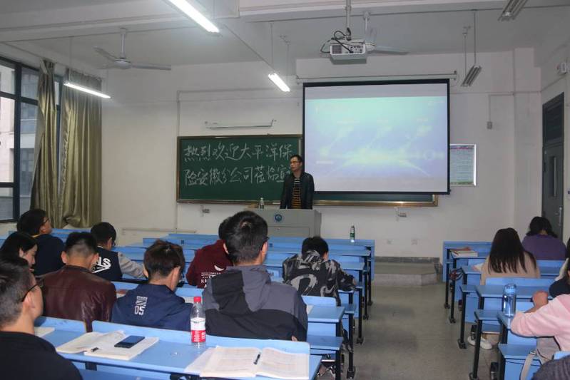 10月22日下午,太平洋保险有限公司安徽分公司校园专场招聘会于教学楼B216举行。太平洋保险安徽分公司车意险理赔部高级经理丁亚夫,人伤诉讼科科长张林,人伤管理科科长李乐意,合肥中心支公司车意险理赔科科长储流刘参加本次招聘。