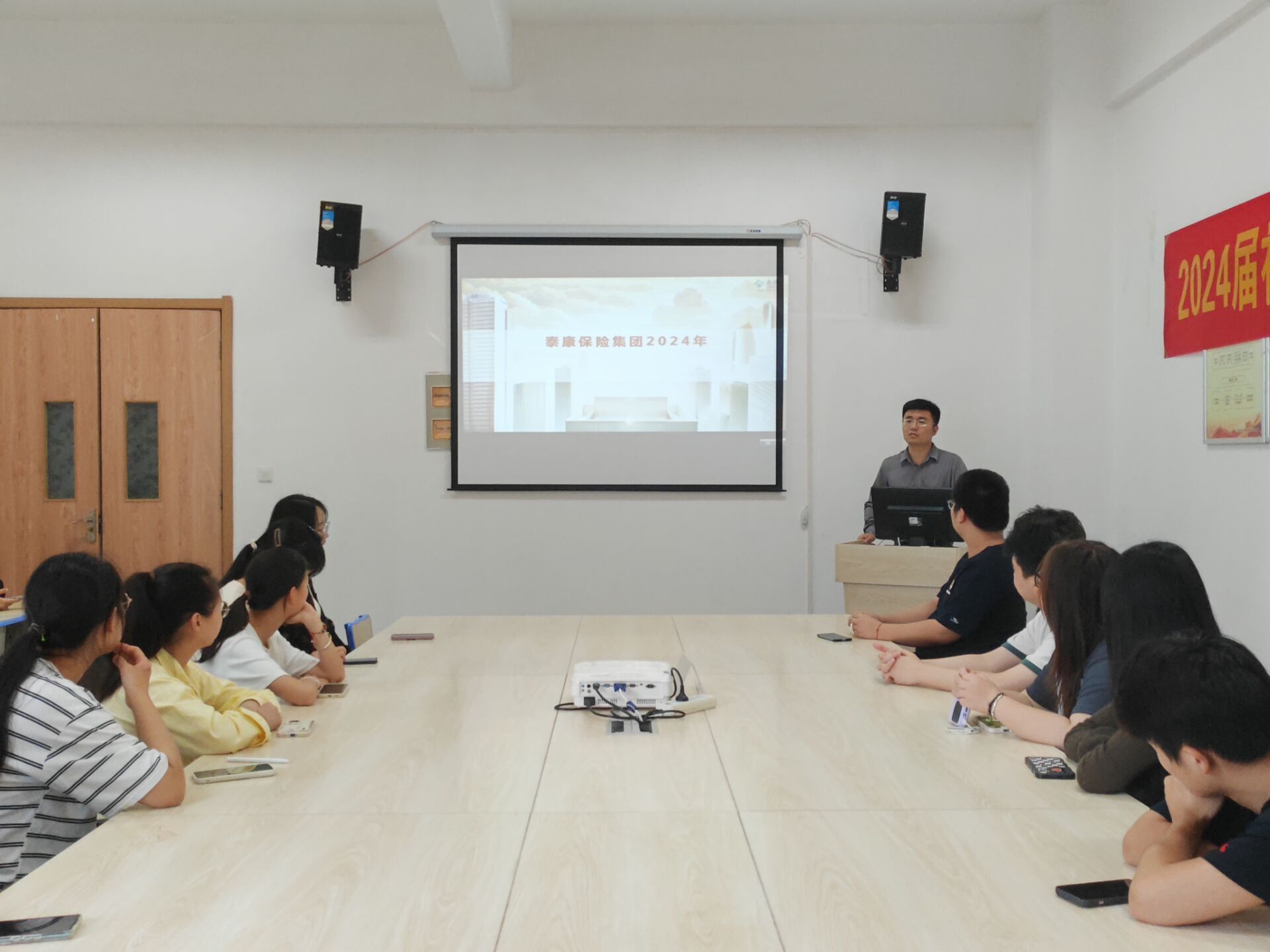 为了扩宽员工实习就业渠道,加强员工就业指导,6月21日下午,英国365集团于经管院438教室举办泰康保险集团专场招聘会,2021级员工和部分毕业生参加专场招聘会。