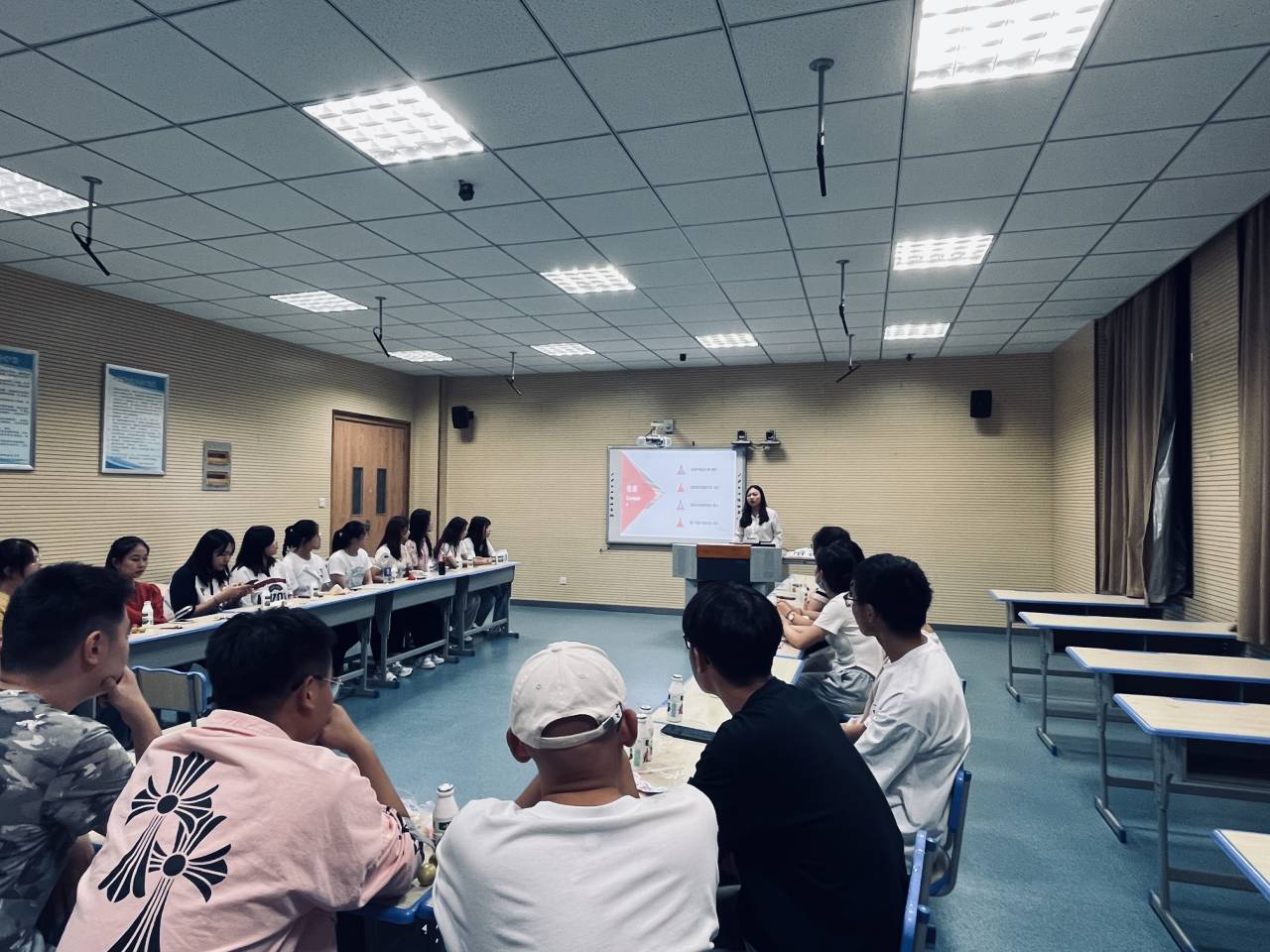 报到日当晚,张亚丽为2022级研究生同学召开了破冰班会,邀请2021级研究生共同参与。会上,张亚丽向新同学介绍了公司、公司的相关情况,并重点针对防诈骗工作提醒同学们注意。