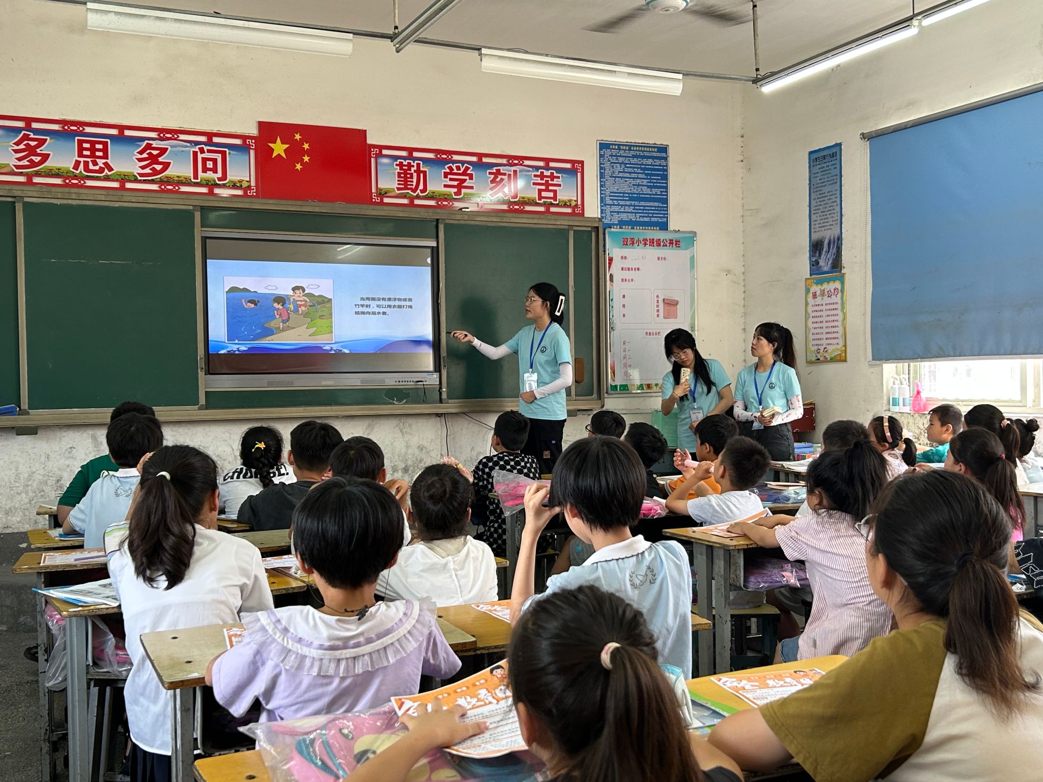 实践团队来到了太和县双浮小学,开展“大手牵小手,你我共成长”知识进课堂活动。实践队员为同学们带来了安全知识宣讲和防溺水知识宣讲,不时穿插着提问和表演,小朋友们的抢答声此起彼伏,课堂学习氛围浓厚,。