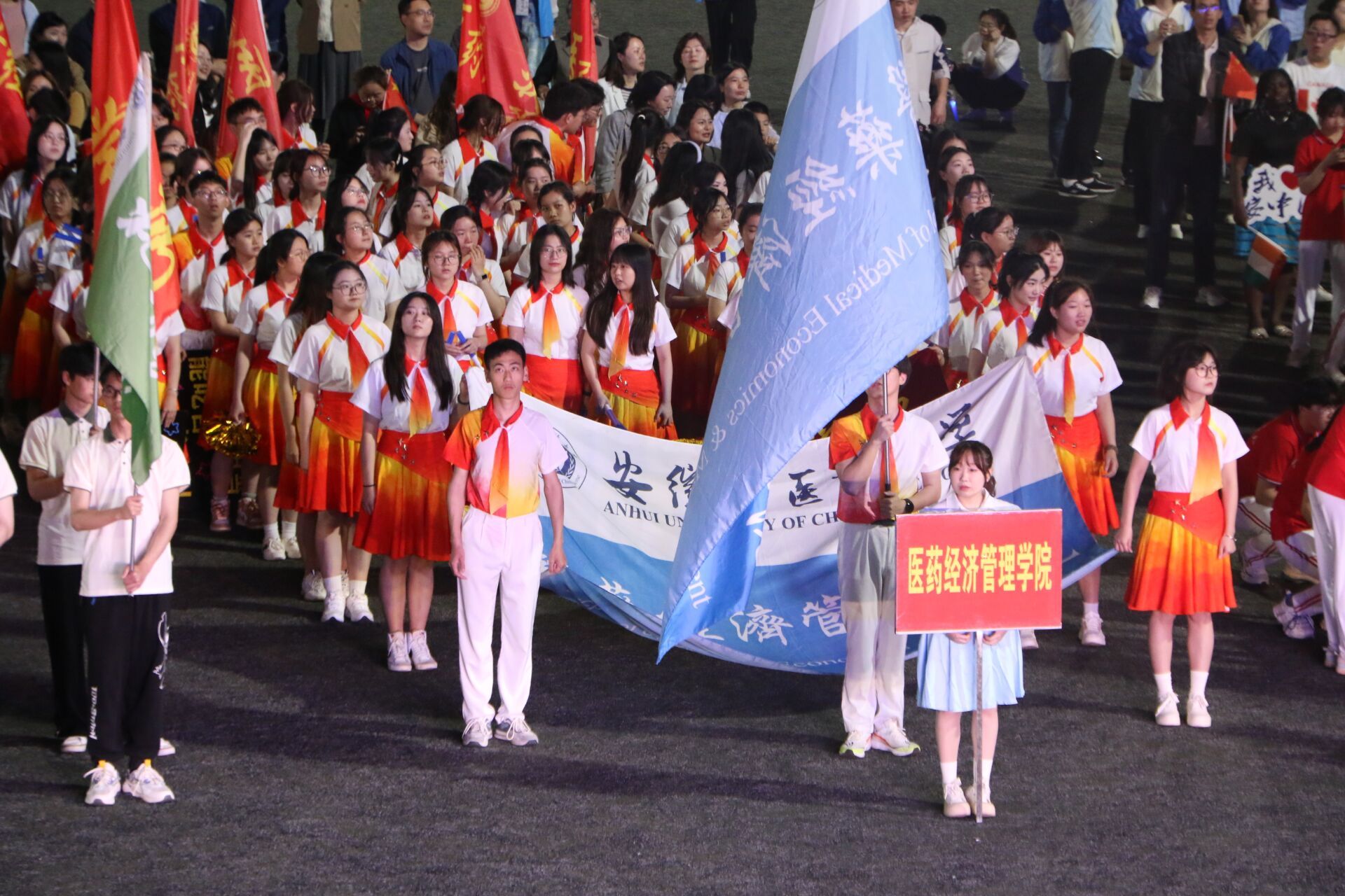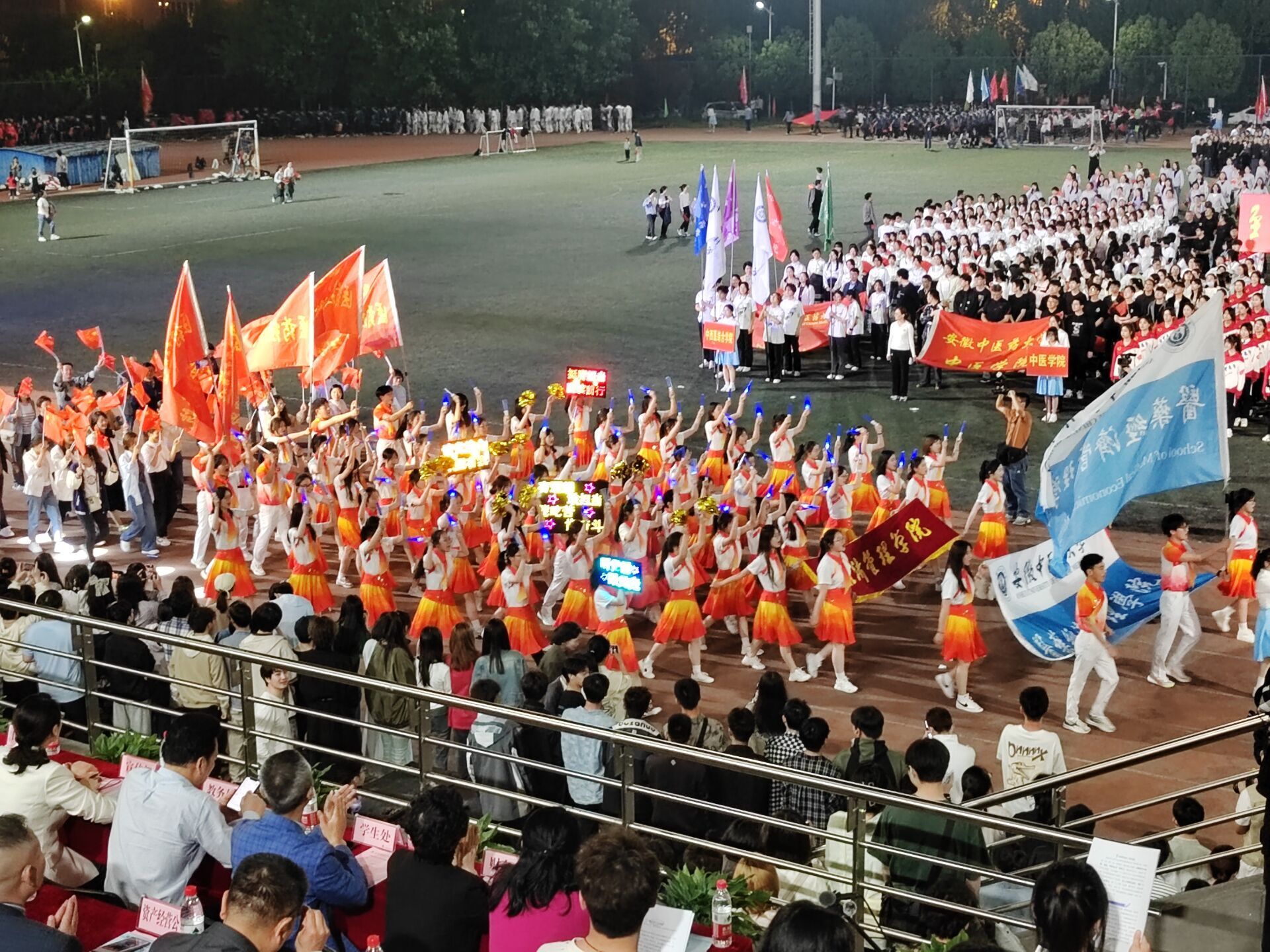 4月22日晚上,运动会开幕式在少荃湖校区田径运动场隆重举行。由教职工和员工共同组成的英国365集团方阵队英姿勃发,队员们迈着铿锵有力的步伐,喊着振奋人心的口号,挥舞着手中的荧光棒和手花,彰显了公司“经邦育才,济民敬业,管人尚德,理事弘道”的院训精神。